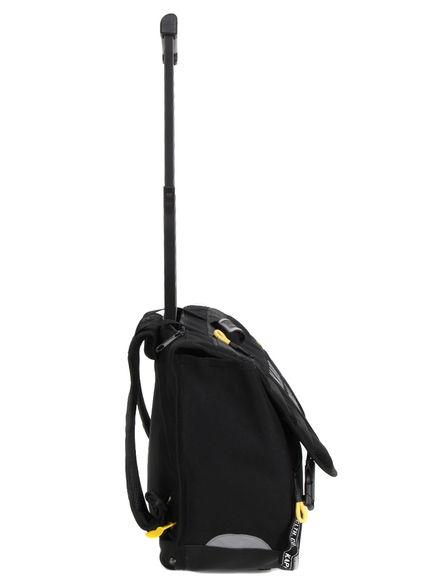 Le cartable trolley Kaporal Basic est muni de deux compartiments pour faciliter l’organisation des divers livres et les retrouver en un clin d’œil pendant la classe. Pour faciliter la préparation des affaires pour le lendemain, un porte emploi du temps est présent sur la face interne du rabat. En-dessous, un passant pour règle permet d’éviter qu’elle n’aille se cacher dans un classeur. Une poche à fermeture à glissière inversée située sous le rabat permet de garder des petits accessoires à l’abri de l’humidité. Au-dessus, un porte-étiquette permet de le restituer facilement à son propriétaire en cas de perte. Pour garder la carte de cantine en accès rapide, il possède également une poche frontale.