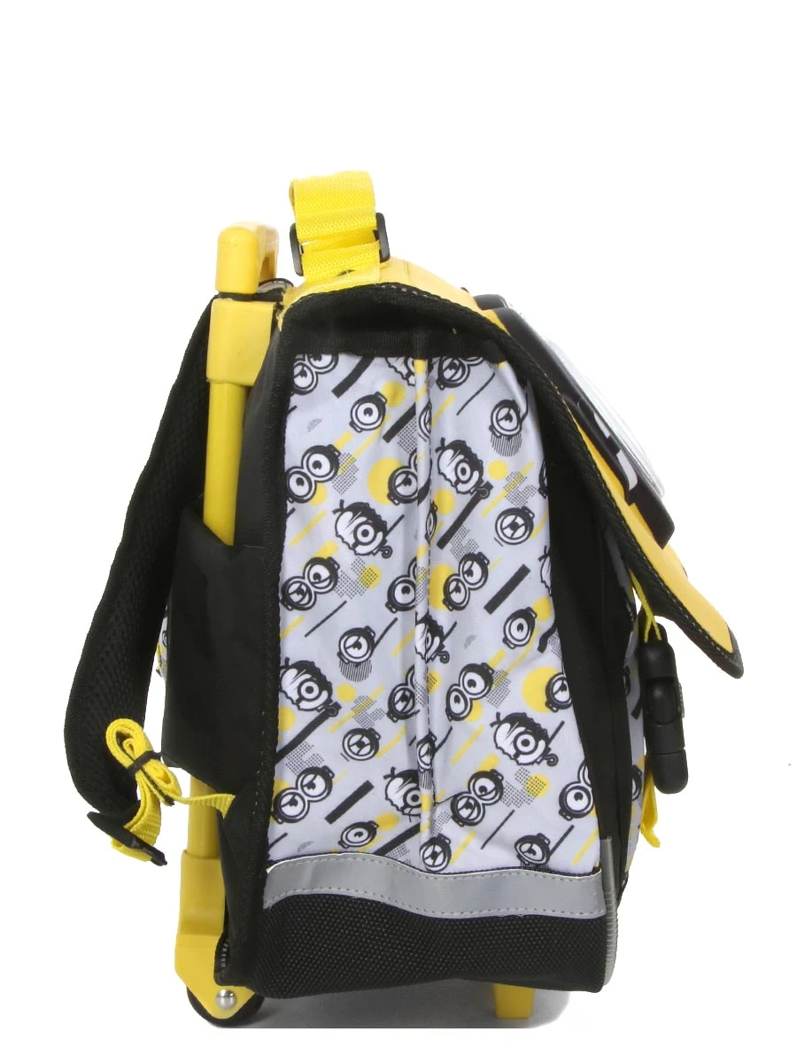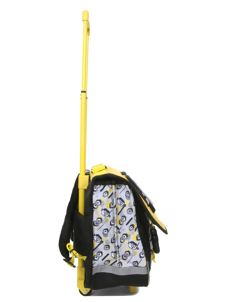 Le cartable à roulettes Les Minions Watching You 41 cm est idéal pour les classes du CE2 au CM2 avec son format compatible A4 et 24 x 32. Son revêtement en polyester arbore des yeux mobiles trop rigolos qui regardent partout au fil des tribulations du cartable. Comme rien n’importe plus que la sécurité des enfants, il est doté de détails réfléchissants. Les cahiers sont à l’abri de l’humidité grâce au fond déperlant et aux patins de protection. Pas besoin de s’abîmer le dos pour emporter tout le nécessaire à l’école grâce à son roulage fluide.