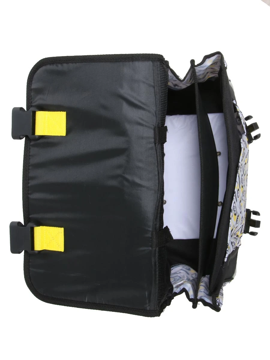 L’intérieur du cartable trolley Les Minions Watching You est muni d’une doublure sur les parois avant et arrière, et d’une finition déperlante sur les autres pour éviter de tâcher son revêtement éclatant en cas de fuite d’encre ou de jus. Il est équipé de deux compartiments pour trier les divers livres et classeurs par matière ou par catégorie. La règle dispose de son emplacement propre et est maintenue par des scratches pour en finir avec les parties de cache-cache dans les cahiers. Une grande poche frontale peut accueillir cahier de liaison, pochette de crayons de couleur et un petit en-cas pour la récré par exemple.