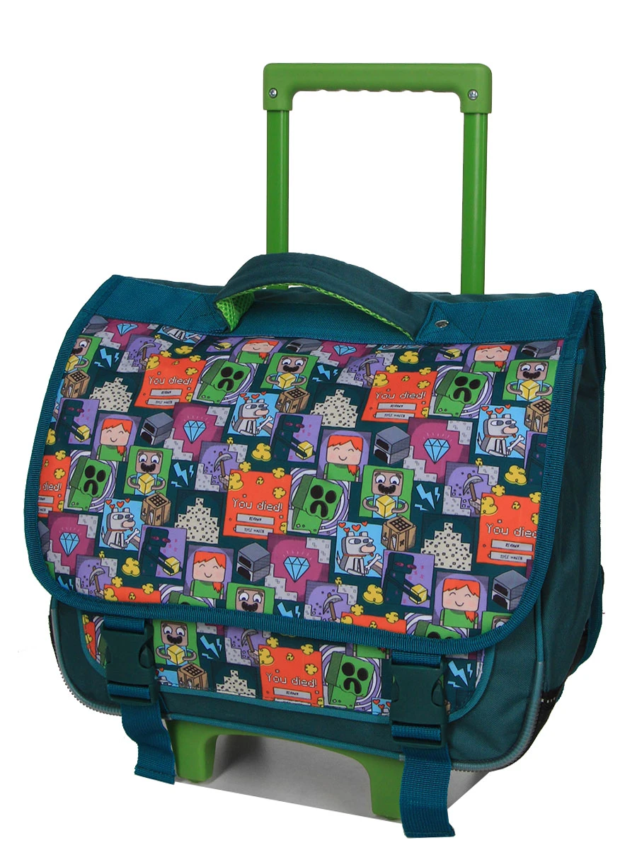 Le cartable 2 compartiments Minecraft Collection offre une bonne fluidité de roulage avec son trolley double tube ajustable, et ses bretelles escamotables pour éviter de se prendre les pieds dedans. Sa poignée supérieure, ses bretelles et son dos sont rembourrés pour un portage confortable en toutes circonstances.