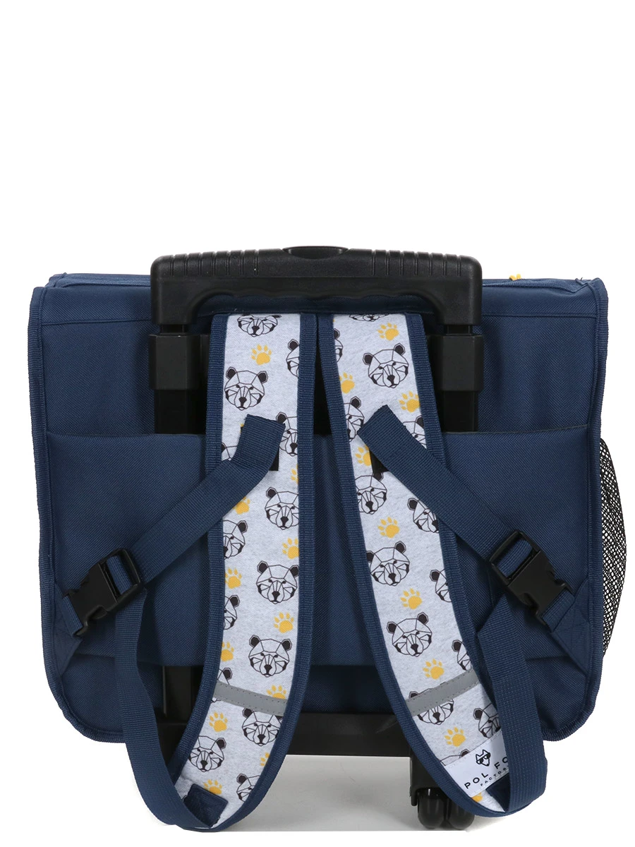 Quoi de mieux pour ne pas charger les épaules des plus petits que le cartable garçon Réversible Pol Fox Bear ? Son trolley à double tube ajustable et ses deux doubles roulettes assurent un tractage fluide. Ses bretelles sont escamotables pour ne pas gêner les déplacements lorsqu’il est utilisé en mode trolley. Matelassées et recouvertes de tissu respirant, elles permettent un portage confortable aux épaules. La poignée haute moussée offre une bonne prise en main. Pour rester toujours visible, même les soirs d’hiver, des détails réfléchissants sont cousus à l’avant et sur les bretelles.
