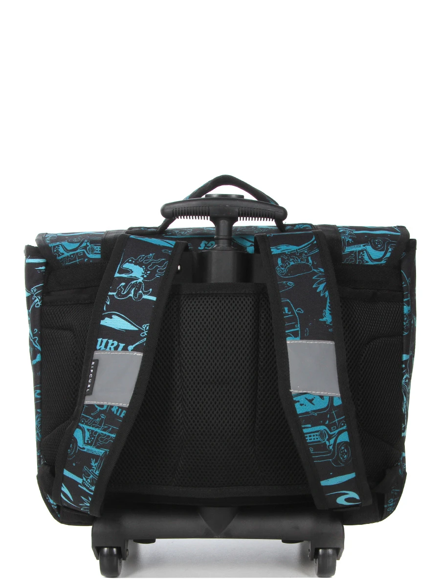 Le cartable à roulettes Rip Curl Twisted Weekend Wheeley Satchel 38 cm répond aux besoins des élèves du CP au CE2 avec son design compatible A4 et 24 x 32, son système de roulage ergonomique pour soulager les petites épaules, et ses détails réfléchissants qui sécurisent le petit bout de chou sur le chemin de l’école. Ses motifs tout droit sortis d’une bande dessinée déjantée participe à son style unique. Pour ne rien gâcher, il est éco-responsable grâce à sa conception en polyester recyclé.