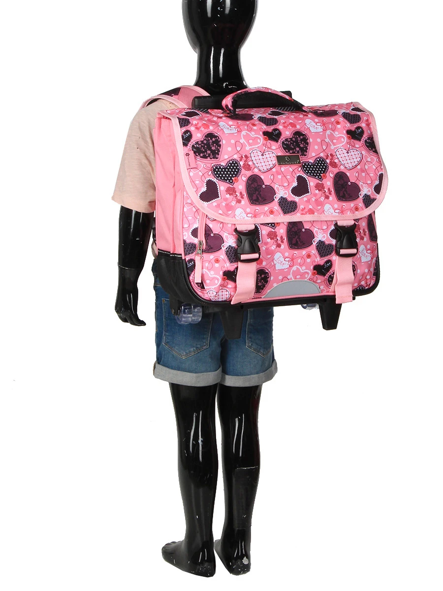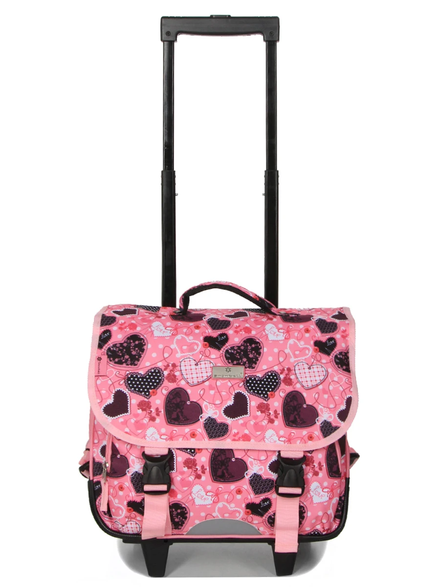 Le cartable 2 compartiments Snowball Romantique Coeur possède deux roues, un trolley double canne ajustable et des bretelles escamotables pour une grande ergonomie de roulage. Le cache roulettes ainsi que les bretelles et le dos garnis d’une mousse en mesh permettent de le porter confortablement sur les épaules sans craindre de salir les vêtements. Il peut également être porté à la main sans subir d’effet cisaillements grâce au rembourrage sur sa poignée supérieure. Le contenu est à l’abri de l’humidité grâce à ses patins de protection et à son fond déperlant.