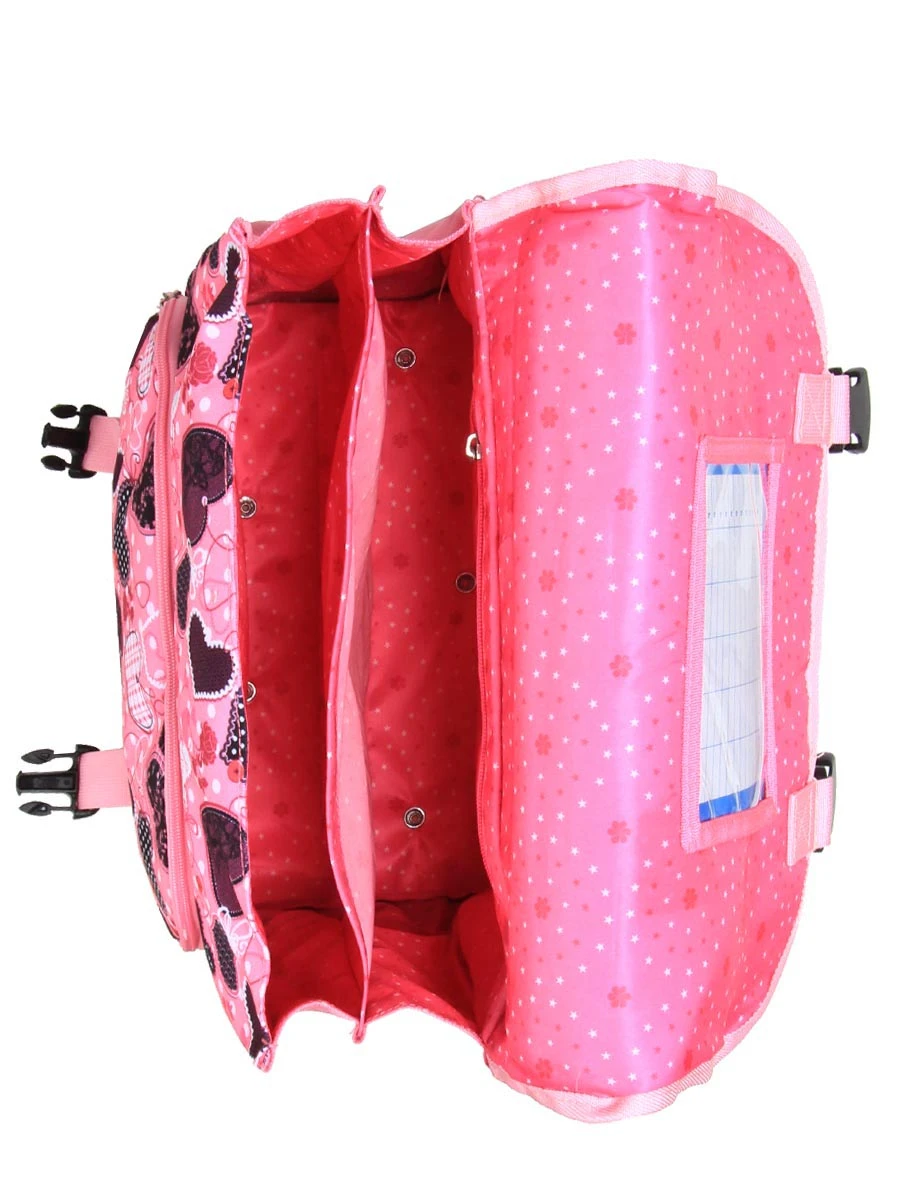 Les deux compartiments et le porte-planning du cartable trolley CP – CE2 Snowball Romantique Coeur permettent d’organiser soigneusement cahiers et livres pour la journée. La carte de cantine est à l’abri dans la petite poche zippée intérieure. La poche frontale semble toute indiquée pour garder crayons de couleur et cahier de brouillon en accès rapide. Dans le dos, un porte étiquette permet de le retrouver facilement en cas de perte.