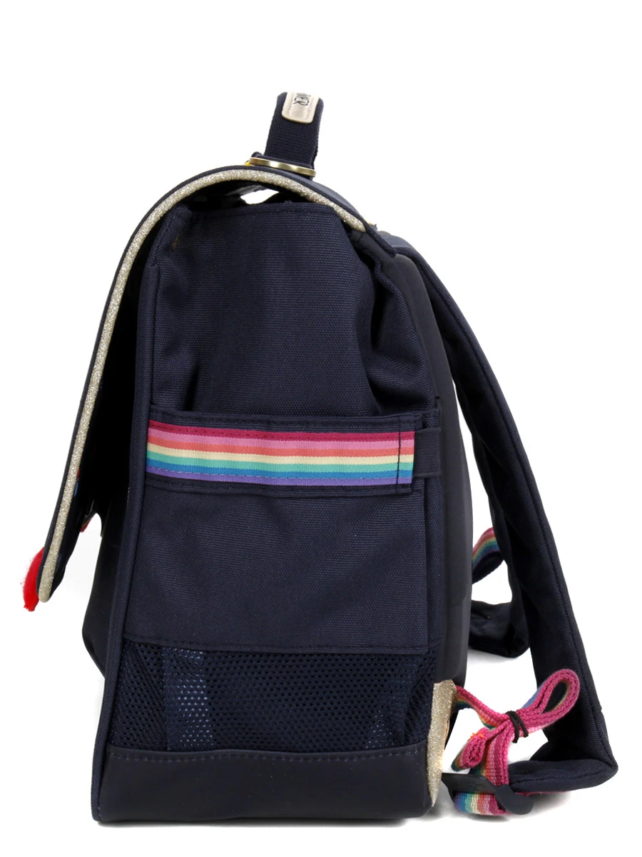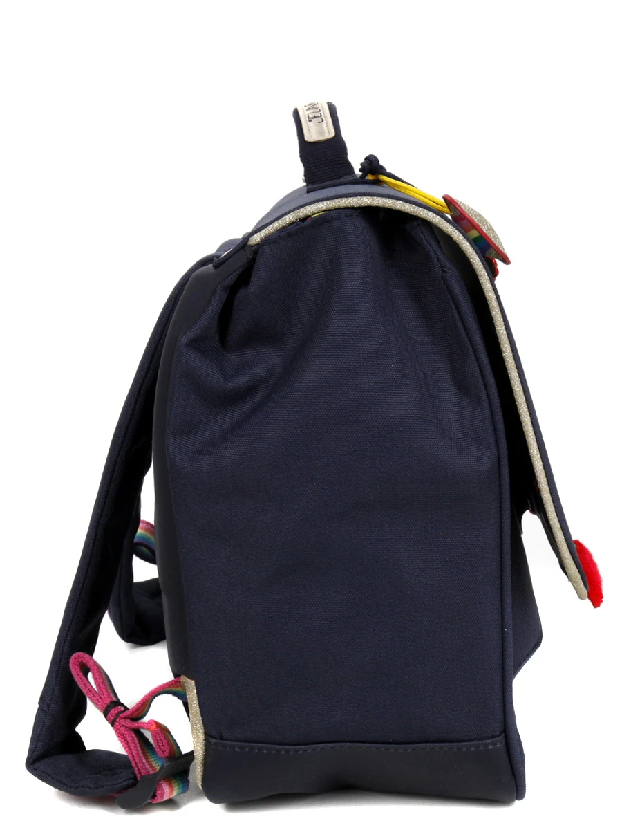 Les deux compartiments doublés du cartable ergonomique Jeune Premier It bag Midi Miss Gadget permettent à son propriétaire d’organiser soigneusement ses affaires pour l’école. Pour le goûter, la poche zippée intérieure semble tout indiquée. La gourde peut se glisser dans la poche latérale extensible, tandis que le cahier de texte a sa place dans la poche frontale située sous le rabat.