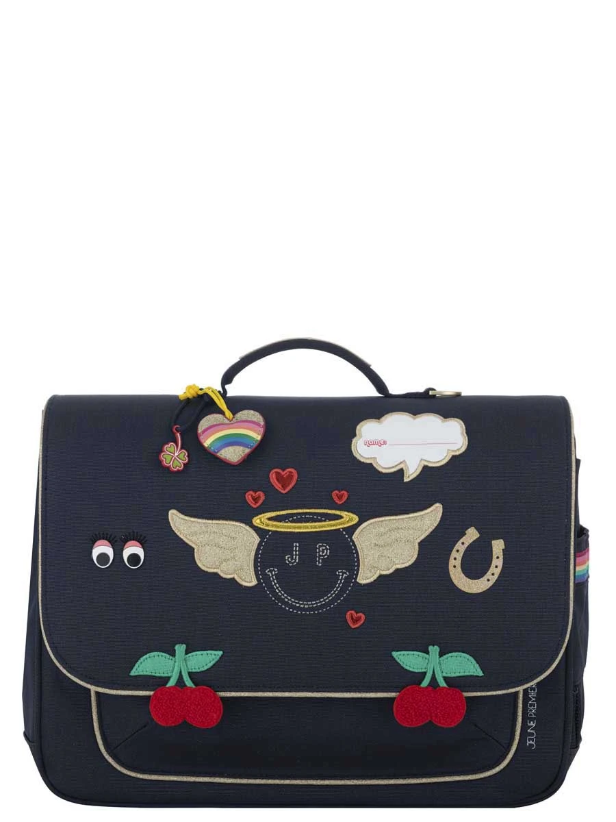 Les bretelles, la poignée et le dos du cartable CP – CE2 Jeune Premier It bag Midi Miss Gadget sont rembourrés pour assurer le confort de son porteur. En cas de perte, le porte-étiquette situé sous le rabat permet de le retrouver facilement. Le fond est renforcé pour absorber les éventuels chocs qu’il pourrait subir dans la cour de récré.