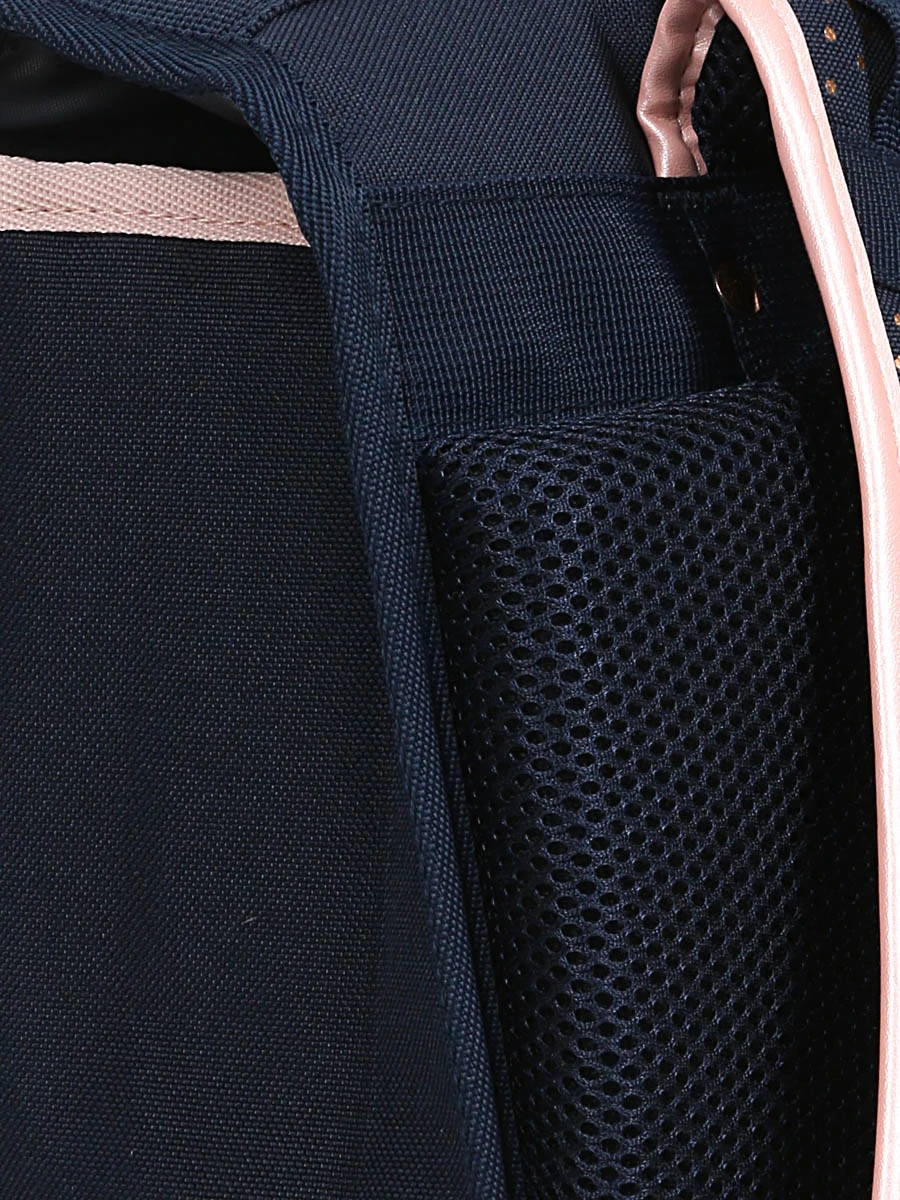 Le cartable Kickers Girl 38 cm réunit tout ce qui fait le charme rétro de la célèbre marque dans une version girly qui devrait faire des jalouses dans la cour de récréation, parmi les jeunes élèves en classes de CP, CE1 et CE2. Son revêtement bleu marine est relevé de finitions en simili-cuir rose, d’un porte-adresse en forme de fleur et de pois dorés sur les poches frontales. Bien conçu, il présente un aménagement très fonctionnel et un système de portage ergonomique. Fabriqué en polyester 900 deniers et renforcé au niveau des angles inférieures et du fond, il offre une bonne résistance aux frottements.