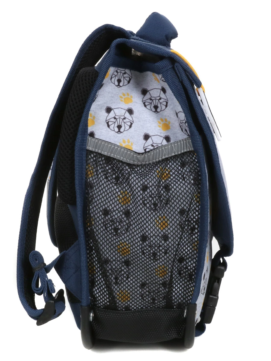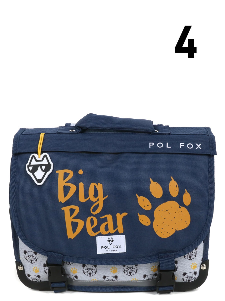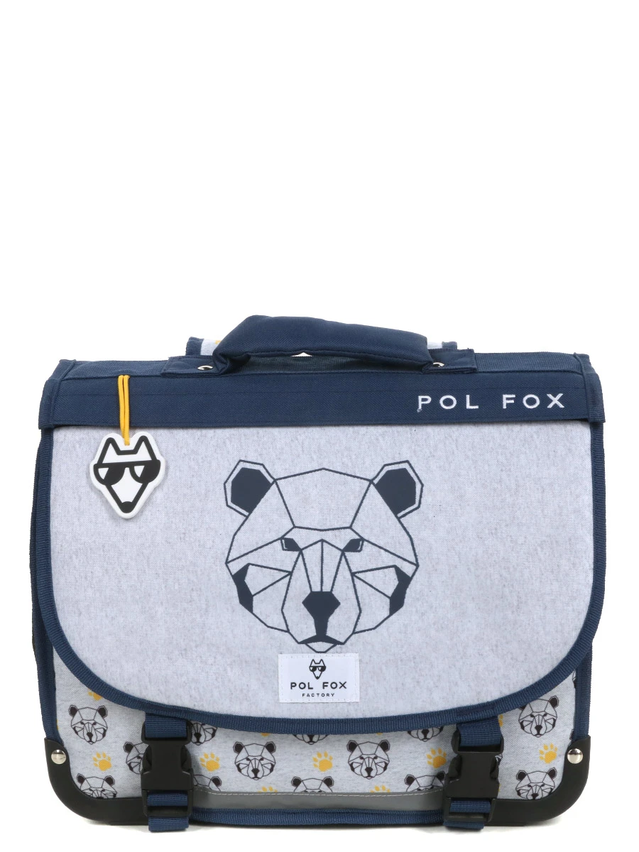 Le cartable Réversible Pol Fox Bear 35 cm est prêt à sortir les crocs pour défendre son petit propriétaire. Dessins d’ours en polygones et empreintes jaunes sur fond bleu-gris : du CP au CE1, les jeunes garçons apprécieront ce design qui évoque autant la tendresse d’un nounours que la puissance de l’ours polaire. La possibilité de retourner son rabat pour changer sa décoration agrémente la préparation des affaires scolaires. Bien aménagé, ergonomique et solide, il sera le compagnon fidèle des premières années d’école primaire.
