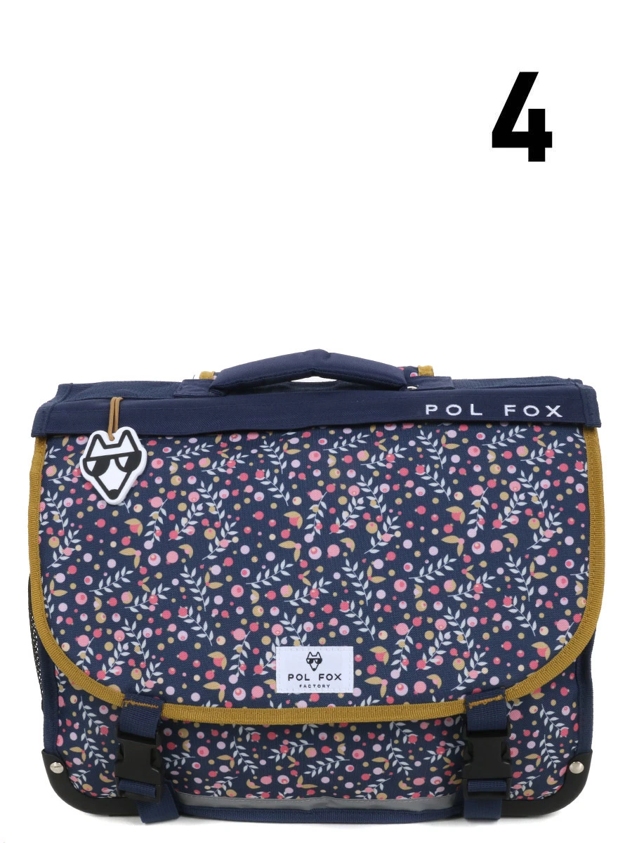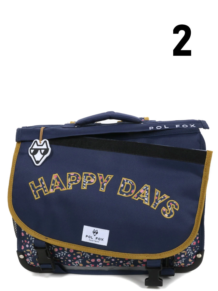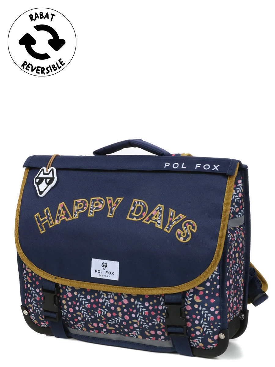 Le cartable pour fille Réversible Pol Fox Happy Days offre toute la place nécessaire aux affaires de cours des élèves de petites classes de primaire. Ses deux compartiments accueillent livres, classeurs et cahiers de formats 24 x 32 cm comme A4, trousse et agenda. Tout ce matériel sensible à l’humidité est à l’abri même en cas d’intempéries, protégé par la doublure intérieure, le revêtement déperlant et le fond imperméable. Une poche à scratch contient les petits accessoires scolaires ou personnels tandis qu’une gourde peut être glissée dans le porte-bouteille extérieur.