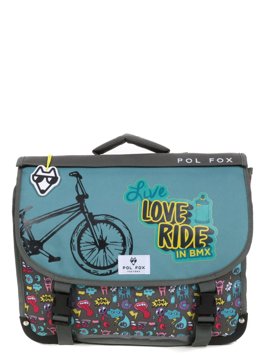Le cartable Réversible Pol Fox Rider 38 cm donne du peps aux journées d’école avec ses amusants motifs de gentils monstres multicolores. Son rabat réversible est orné d’un imprimé évocateur de l’univers du vélo motocross et du graff qui plaira aux enfants les plus aventureux. La fonctionnalité et le confort sont aussi au rendez-vous grâce à ses différents espaces de rangement et ses multiples renforts en mousse. Pour des trajets en toute sécurité, on apprécie la présence de détails réfléchissants.