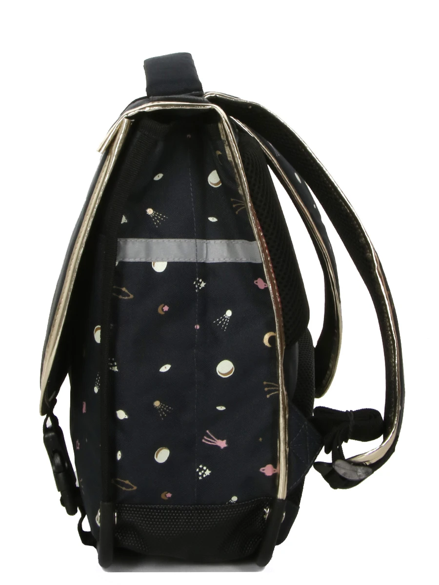 Des bandes réfléchissantes permettent à la porteuse du cartable Pol Fox Space Girls d’être facilement vue sur le trajet de l’école quand la luminosité est faible. Accroché sur le coin supérieur, un porte étiquette en forme de renard permet de retrouver facilement sa propriétaire. En cas de choc, les affaires scolaires sont protégées par les coins inférieurs et les parois renforcés.