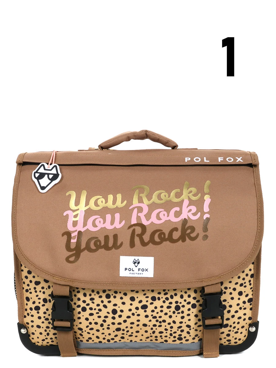 Le cartable Réversible Pol Fox You Rock 38 cm séduira les fillettes rebelles dans l’âme avec son imprimé animalier, sa joyeuse inscription « You Rock ! » et son rabat réversible grâce à une simple fixation à scratch. Idéal pour les accompagner du CP au CE2, il a également tous les atouts pour séduire leurs parents soucieux de leur confort et de leur sécurité. Muni de renforts matelassés pour un portage optimal, il est aussi doté sur les bretelles, à l’avant et sur les côtés de détails réfléchissants qui rendent la petite fille plus visible lorsqu’elle rentre de l’école à la nuit tombante.
