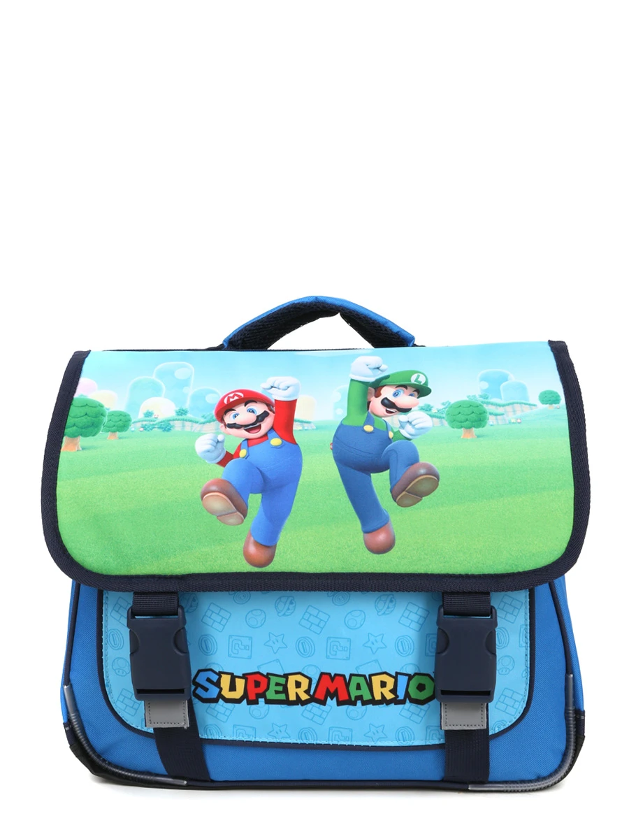 Le cartable Super Mario 38 cm prolonge l’amusement des parties de jeux vidéo avec les copains jusqu’à la cour de récréation : il séduit par son design inspiré des aventures du petit plombier italien qui bondit joyeusement sur son rabat avec son frère Luigi, sur un décor typique des paysages du jeu. Le reste du sac se distingue par son revêtement bleu vif et sa poche avant décorée des éléments caractéristiques de Super Mario : tortues, champignons, étoiles, morceaux de mur, etc. Avec ses dimensions adaptées aux classes de CP, CE1 et CE2, son polyester léger et son prix abordable, ce cartable a tout pour séduire !