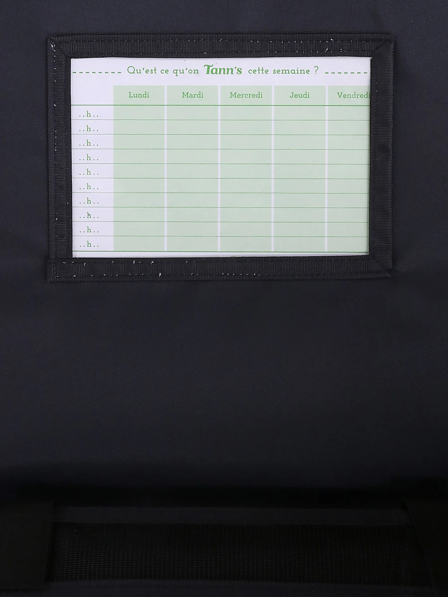 Le cartable ergonomique Tann’s Maleaume accueille cahiers et manuels dans ses deux compartiments doublés. La règle dispose de son emplacement réservé dans le passant à scratch. Deux poches intérieures et deux poches frontales zippées gardent les petits accessoires comme le goûter, la carte de cantine, les clefs et un porte-bonheur en sécurité. Pour être sûr de ne rien oublier pour la journée de classe, il comporte un porte-planning.