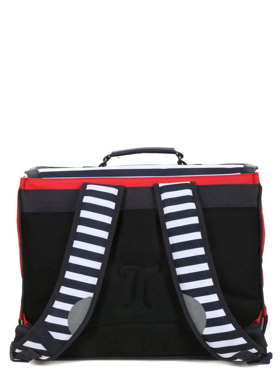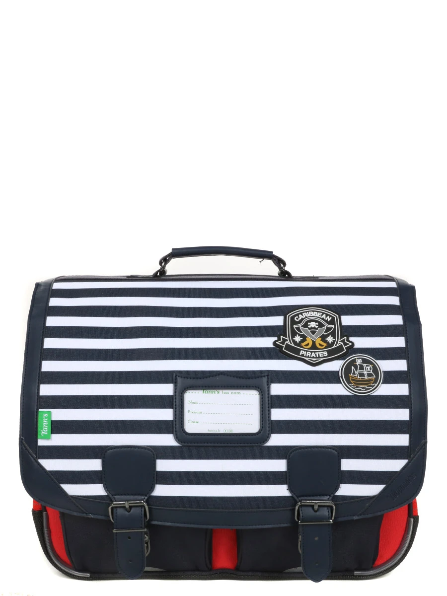 Le cartable Tann’s Maleaume 41 cm est conçu pour les marins confirmés. Compatible A4 et 24 x 32, il convient pour les classes du CE2 au CM2. Il est fabriqué en polyester recyclé pour respecter les océans et l’environnement en général. Des détails réfléchissants le rendent perceptible à toute heure, notamment pendant les matinées obscures. En cas de perte, il est restitué rapidement à son propriétaire grâce à son porte-étiquette.
