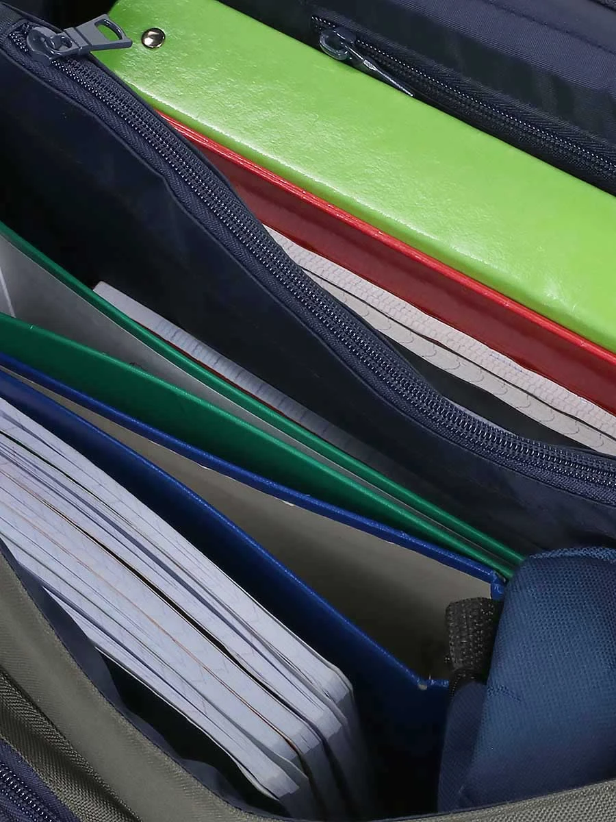 Les divers livres et cahiers trouvent une place confortable dans les deux compartiments du cartable ergonomique Tann’s Oscar. Les accessoires peuvent quant à eux se glisser dans les deux poches intérieures, le passant pour la règle et les deux poches frontales. En cas de perte pendant les fouilles paléontologiques, un porte-étiquette permet de le restituer facilement à son propriétaire.