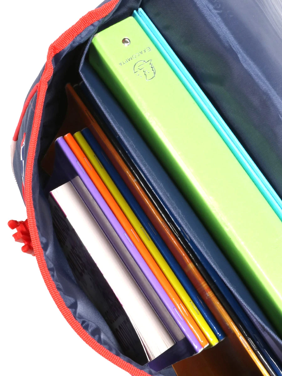 Pourvu de deux compartiments, le cartable Cars Damier loge les manuels de cours, les cahiers et les classeurs à anneaux de formats A4 et 24 x 32 cm, l’agenda et la trousse. Il présente une poche plate frontale qui permet de ranger le paquet de billes et une barre de céréales pour la récréation. Le rabat se ferme par deux attaches à clip, très simples d’utilisation pour les jeunes garçons. Pour protéger son contenu des bousculades et de la saleté lorsqu’il est posé au sol, le sac est doté d’un fond et de coins inférieurs renforcés.
