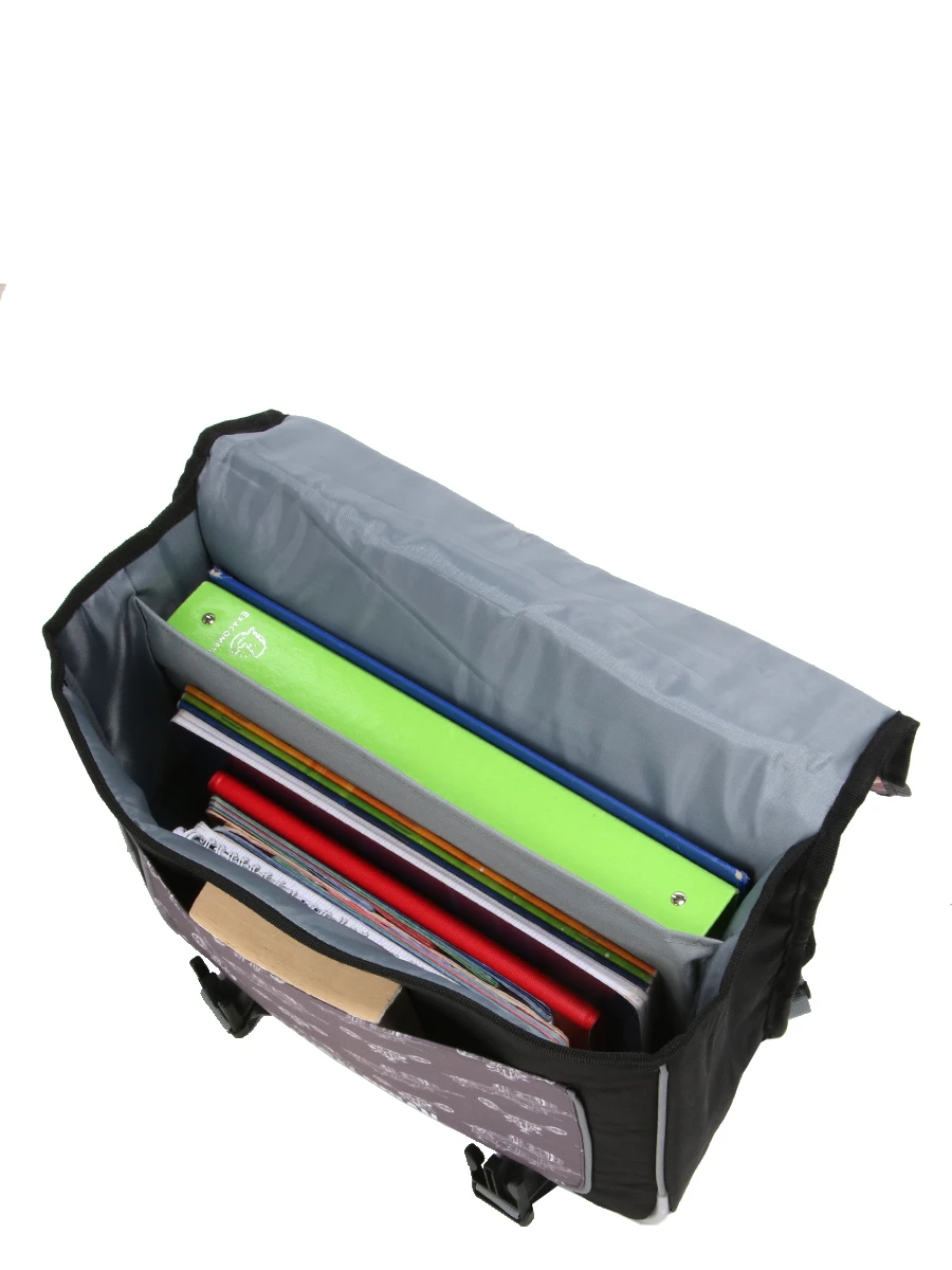 A l’intérieur, le cartable Star Wars The Mandalorian renferme 2 grands compartiments compatibles A4 et 24 x 32 pour faciliter le chargement des cahiers, classeurs, livres et autres indispensables pour un apprentissage dans de bonnes conditions. Sa poche frontale sous rabat à attaches rapides permet de laisser accessibles certains effets personnels ou un goûter, par exemple. Enfin, pour préserver son contenu de la pluie, on peut compter sur sa doublure textile et son fond renforcé.