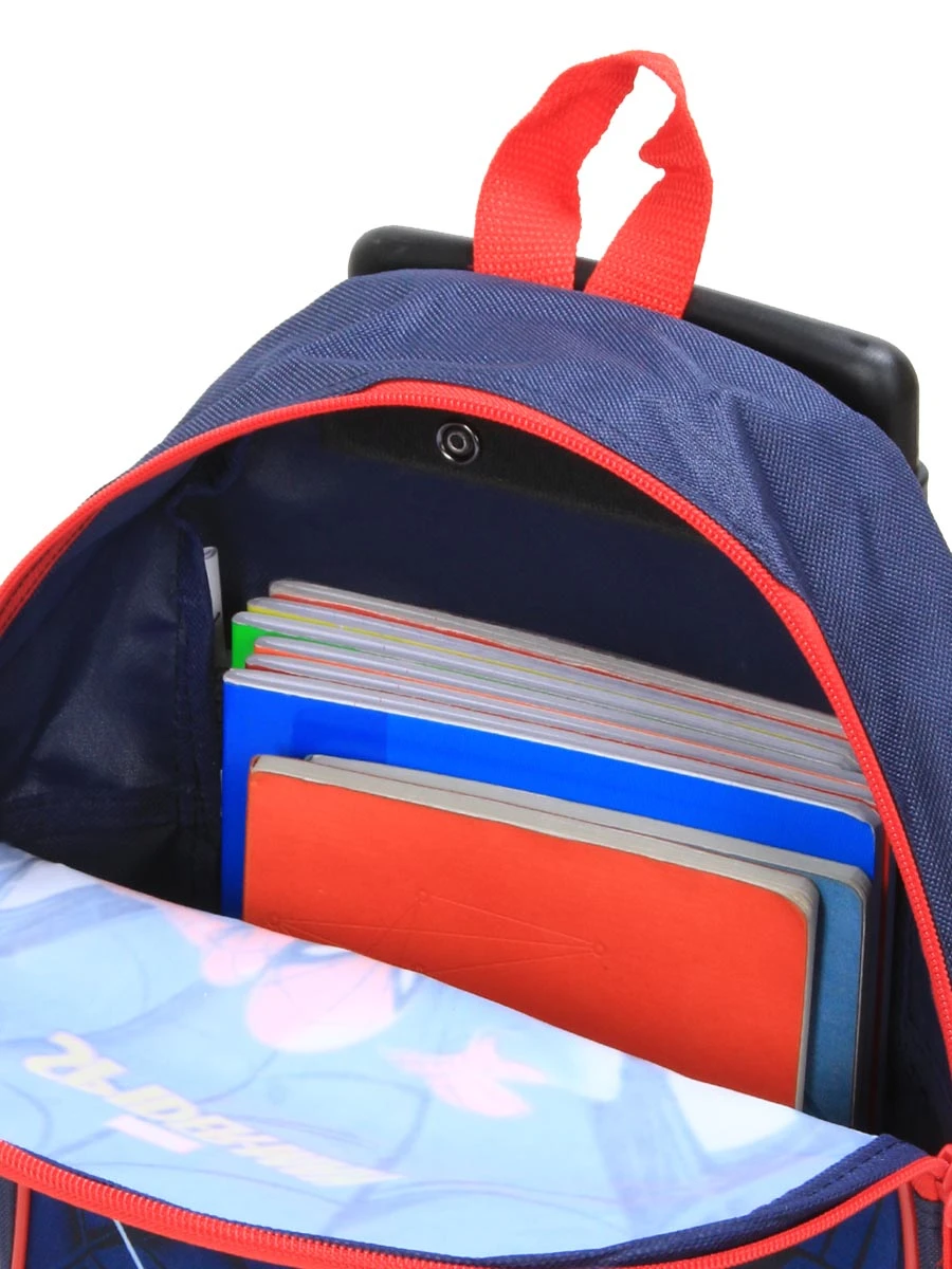 Le compartiment zippé du sac à dos trolley Spider-Man Eyes peut loger aisément petits cahiers de brouillon, doudou et trousse. Sa finition intérieure déperlante préserve le costume de Peter Parker en cas de fuite de jus de fruit.