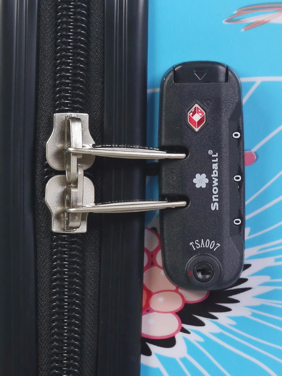 L’ensemble de valises 4 roues Snowball Flowers & Birds est doté de renforts latéraux sur les deux plus grandes tailles, afin de pouvoir les allonger sur le sol tout en préservant leur coque d’une usure prématurée. Le trolley double tube est quant à lui ajustable sur la 55 et la 65 cm, tandis que les trois disposent de roulettes multidirectionnelles. Vous pouvez de cette façon les garder à vos côtés ou derrière vous. Pour les porter et les ranger dans le coffre ou dans le train, par exemple, l’ensemble est muni de poignées – une seule pour la plus petite et deux pour les grandes – ergonomiques et confortables. Enfin, voyagez l’esprit tranquille grâce aux serrures TSA à codes installées sur toutes les tailles.