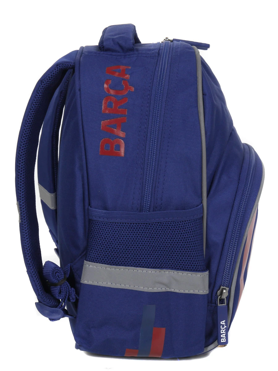 Le compartiment du sac à dos maternelle FC Barcelone Stripes peut accueillir petits cahiers, trousse et peluche pour que la journée se passe bien. Pour le goûter, la poche frontale semble toute indiquée ! Deux poches latérales extensibles permettent d’y glisser des petites bouteilles d’eau.
