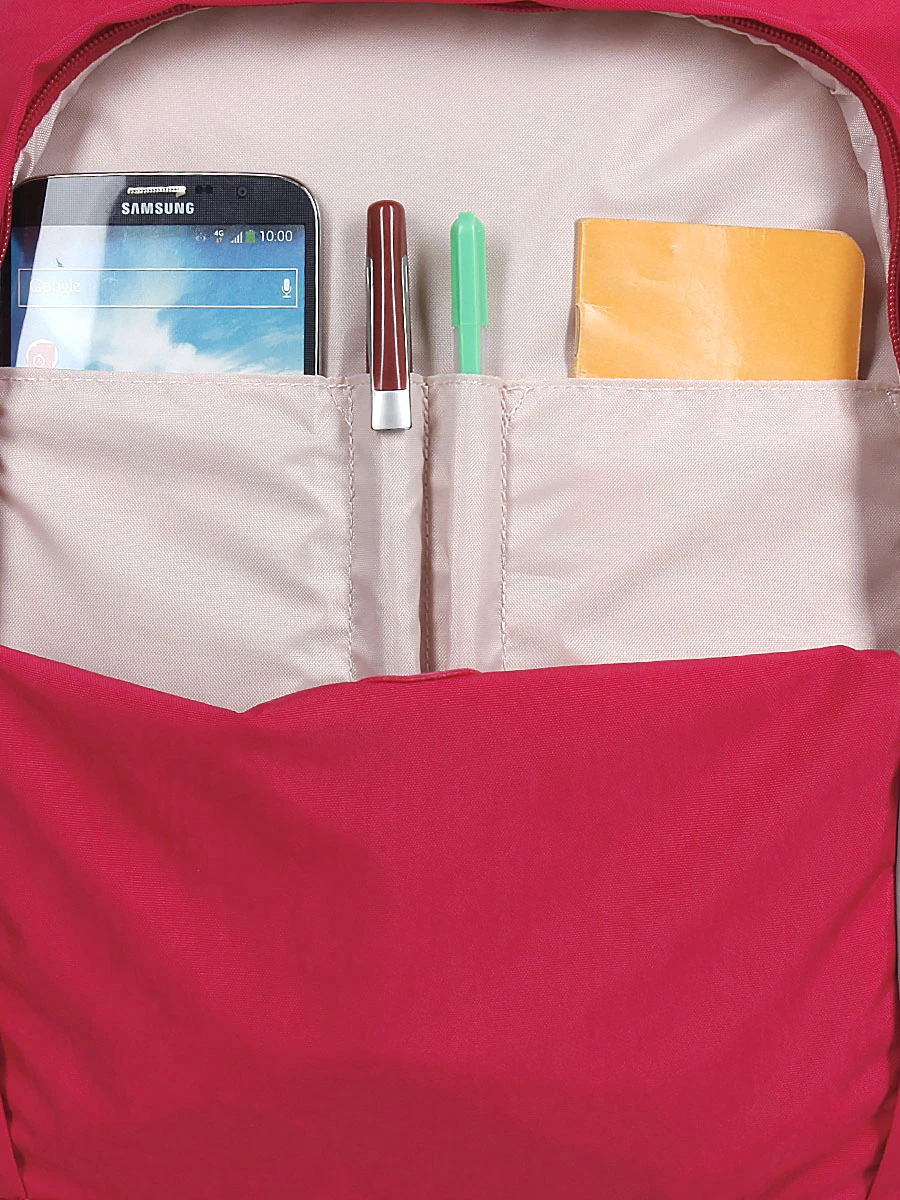 Le compartiment principal du sac à dos 4 roues Kipling New Zea est très vaste. Il peut facilement accueillir tous les cahiers et classeurs nécessaires au bon déroulement de la journée. Une poche rembourrée située à l’arrière est conçue pour un ordinateur jusqu’à 12 pouces. Le second compartiment, plus petit est quant à lui parfait pour le cahier de texte ou l’agenda, la pochette de crayons de couleurs, et une multitude de petits accessoires qui peuvent être organisés dans les deux poches plates et deux passants pour stylos. Il possède également un porte-adresse pour le retrouver facilement en cas de perte. Une poche frontale permet de garder un petit livre sous la main pour passer le temps entre les cours. Deux poches extensibles sur les côtés permettent un accès rapide à la gourde et au parapluie. A l’arrière, une grande poche recèle un secret.