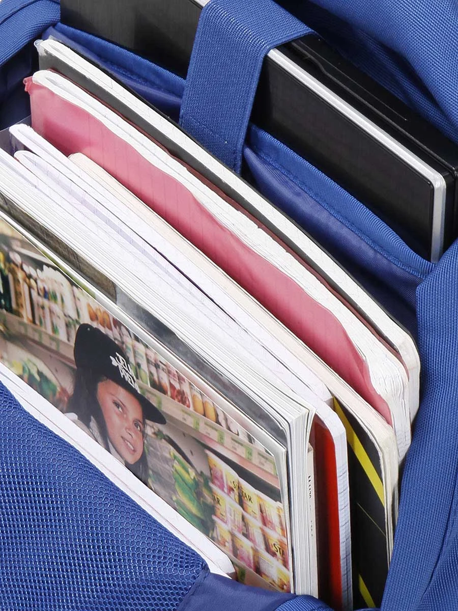 Le compartiment du sac Elite Pack Light Medium comporte une poche matelassée pouvant accueillir un ordinateur jusqu’à 15.6 pouces. Celui-ci est alors maintenu bien en place par une bande élastique avec système velcro. Sur la paroi opposée, une poche zippée en mesh est pensée pour loger le chargeur de l’ordinateur. Des cahiers ou dossiers au format A4 trouvent par ailleurs facilement leur place dans le compartiment. A l’extérieur, une poche frontale permet d’y ranger clefs, livre ou petit carnet.