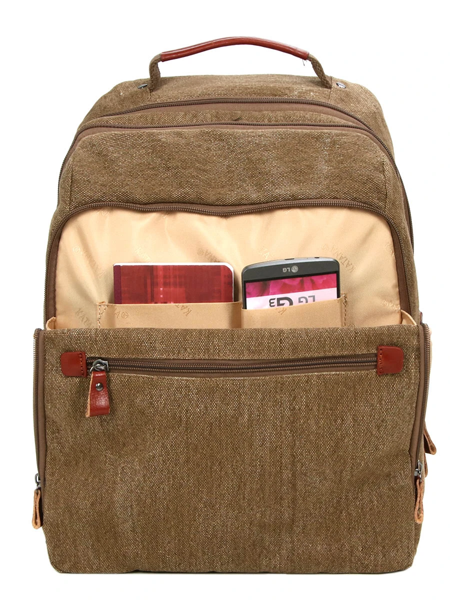 Le sac à dos ordinateur Katana Hygge peut se porter sur le dos à l’aide de ses bretelles ajustables résistantes grâce à leur finition en cuir. De plus, ces dernières sont moussées afin d’assurer un bon confort sur les épaules. Pour le manipuler à la main, il est équipé d’une poignée garnie de cuir au toucher doux lui octroyant une prise en main commode. Enfin, son panneau dorsal renforcé protège efficacement son contenu tout en conférant un porté agréable.