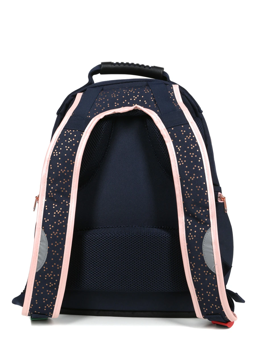Le sac à dos Kickers Girl affiche un look délicieusement rétro et raffiné avec ses détails signature de la marque et ses touches féminines. Le célèbre logo apparaît, embossé, sur un œillet métallique décoratif et sur les tirets de zips des compartiments, un porte-adresse en forme de fleur orne la paroi avant, la poche frontale cache sa fermeture pratique par boutons aimantés sous des sangles à boucle décorative et le revêtement bleu nuit est relevé de finitions en simili-cuir rose, de détails en métal or rosé et de pois de la même teinte sur la poche frontale. Les vastes capacités de rangement du sac correspondent aux besoins en classes de CE2, CM1 et CM2. Sa conception en polyester 900 deniers lui assure une bonne durabilité. Enfin, particulièrement soigné sur le plan de l’ergonomie, il facilite le portage des fournitures scolaires.