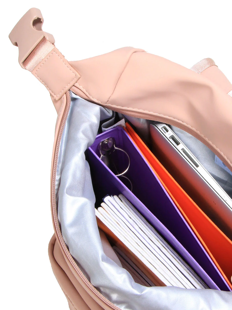 Côté rangement, le sac New Rebels William Strap offre un grand compartiment adapté aussi bien pour des documents A4 qu’un peu de linge. Une tablette ou un ordinateur jusqu’à 13 pouces peuvent être glissés avec soin dans sa poche moussée. Sa petite poche à zip permet de sérier à part certains petits essentiels. Pour la paire d’écouteurs à garder à portée de main, on peut opter pour sa poche frontale zippée. Une dernière poche discrètement intégrée à son panneau arrière vient compléter le tout.