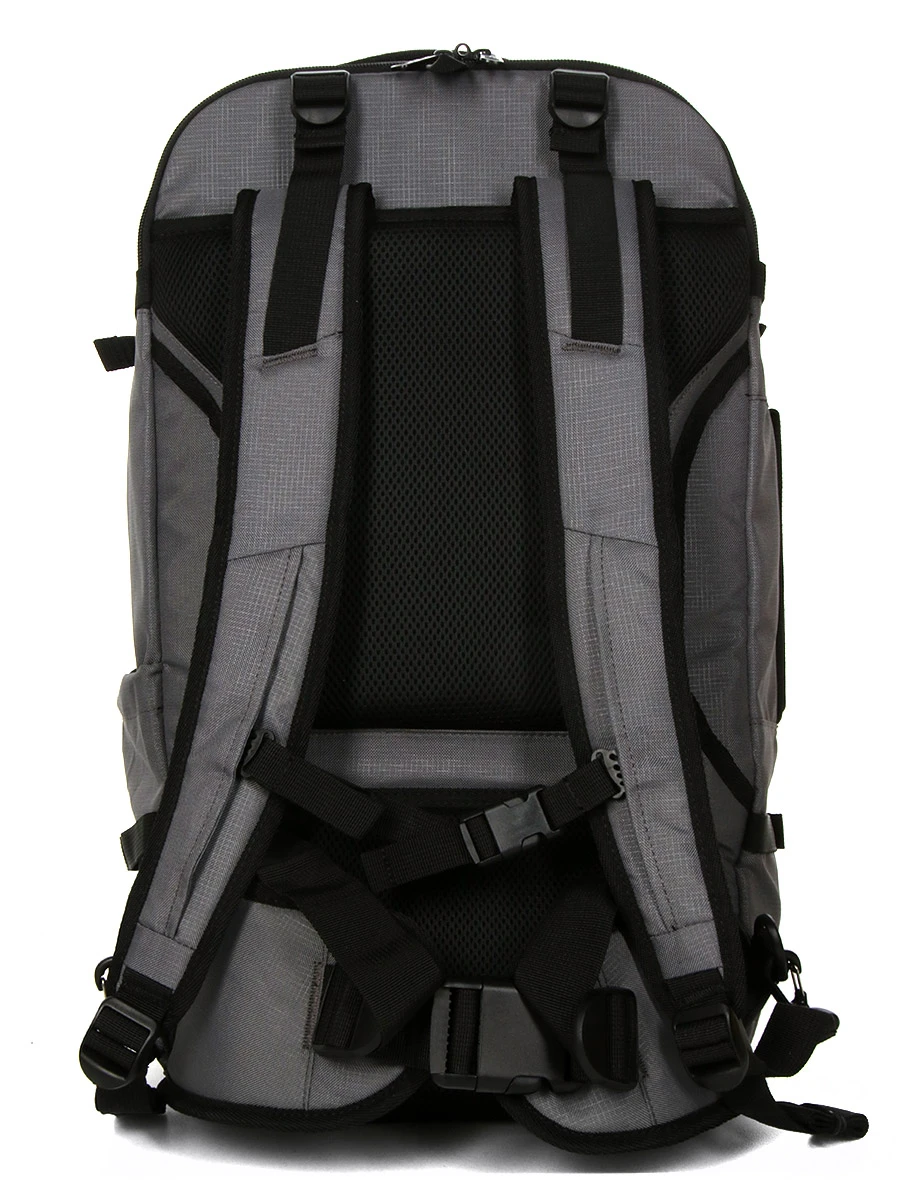 Le sac Samsonite Roader Travel S est équipé de deux compartiments. Le compartiment numérique dispose d’une poche pour un ordinateur portable jusqu’à 17.3 pouces et d’une poche pour tablette munies d’une sangle de maintien à scratch. Le compartiment textile est vaste et peut loger les vêtements et la trousse de toilette pour un court séjour. Quatre sangles ajustables permettent de les garder bien en place. Deux poches en mailles filet situées sur les côtés peuvent accueillir la batterie nomade (non fournie) pour celle située sous le câble USB, et un flacon pour l’autre. La poche en mesh supérieure est quant à elle idéale pour le chargeur de l’ordinateur. Sur la paroi mobile, une grande poche zippée permet de séparer les accessoires des vêtements. Pour toujours garder une gourde à portée de main, il possède une poche latérale. La poche frontale est assez vaste pour des livres. A l’arrière, des documents au format A4 peuvent tenir dans la grande poche prévue pour les bretelles escamotables. Sur le fond du sac, la housse de protection est accrochée à l’intérieur d’une petite poche zippée.