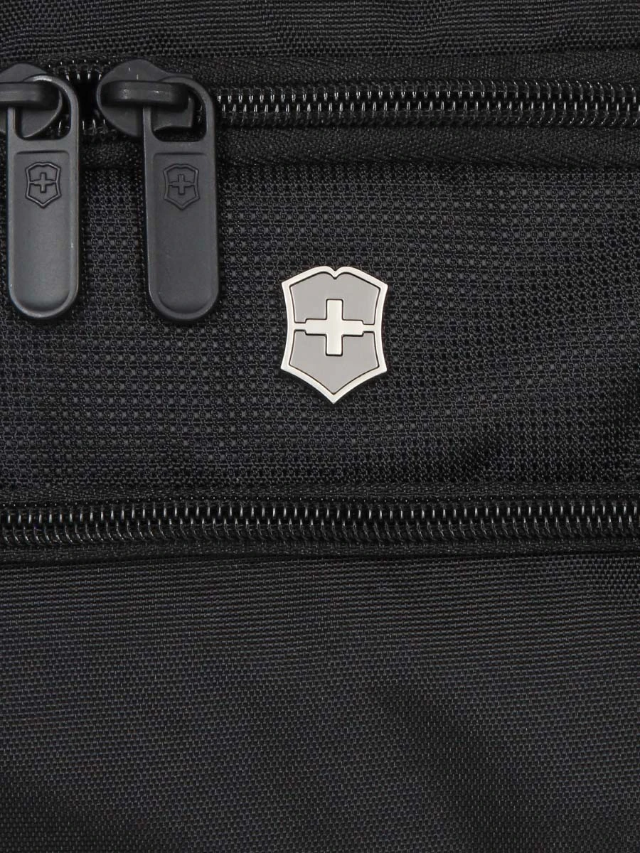 Le sac de voyage 2-en-1 Victorinox VX Sport Evo dispose de deux compartiments. Le plus grand peut accueillir tout le nécessaire pour un séjour de 15 jours, tandis que le petit est conçu pour loger des chaussures ou le linge porté. Les accessoires trouvent leur place dans la grande poche latérale. Celle-ci comporte un poche moussée pour téléphone portable, une poche plate, une poche zippée, une poche pour couteau suisse et un porte-clefs. Les documents de voyage et un petit livre peuvent quant à eux se glisser dans la poche frontale.