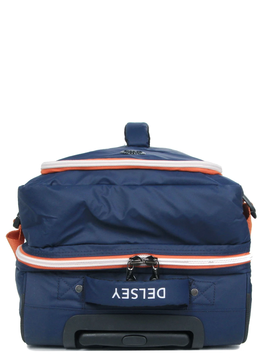 Le sac trolley Delsey x Roland Garros Raspail possède 2 compartiments spacieux entièrement doublés pouvant accueillir bon nombre de tenues de rechange, d’affaires de toilette, de paires de chaussures supplémentaires… Pour éviter les faux plis, les vêtements peuvent être maintenus efficacement en place en utilisant ses 2 plateaux séparateur souples zippés et ses 4 sangles réglables. A l’avant, 2 poches à fermeture à glissière permettent de laisser accessibles titres de transport et autres essentiels au bon déroulement du voyage.