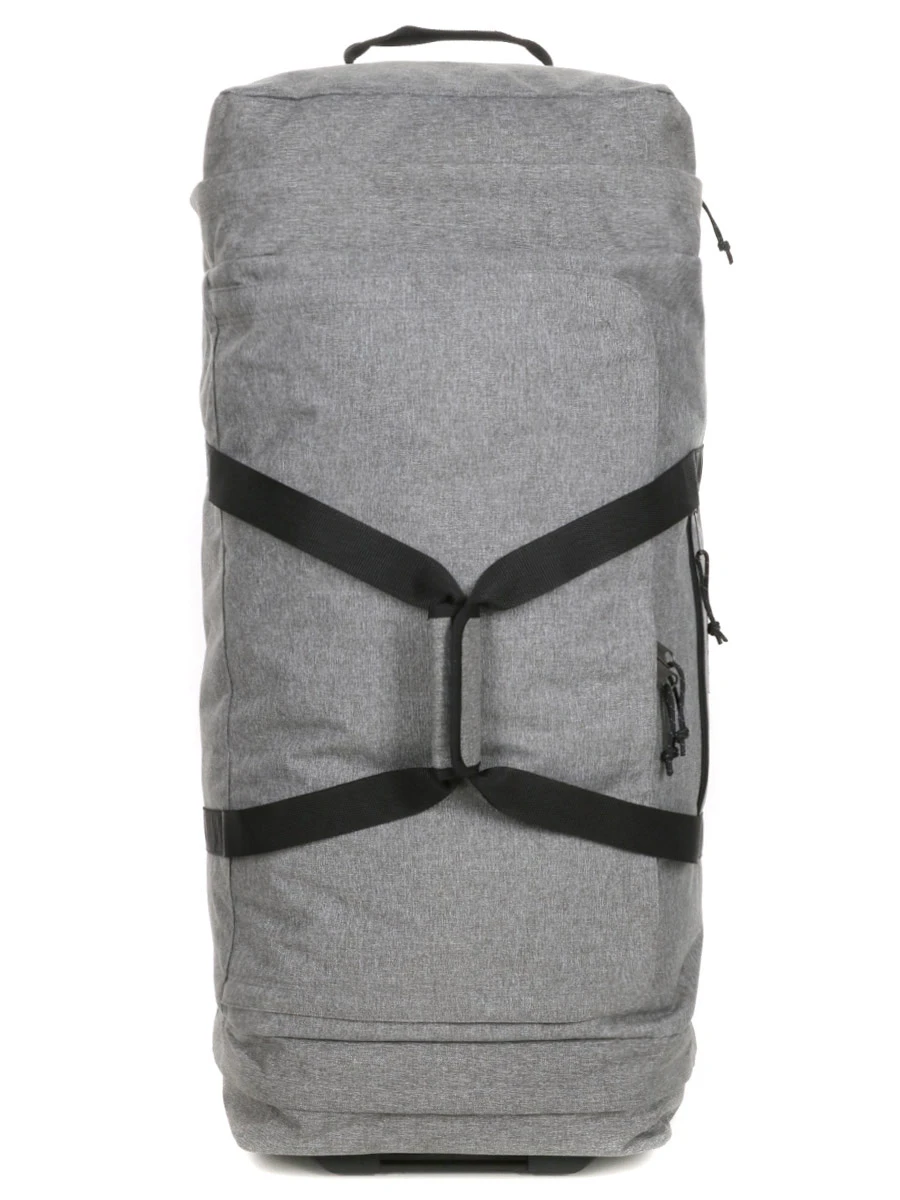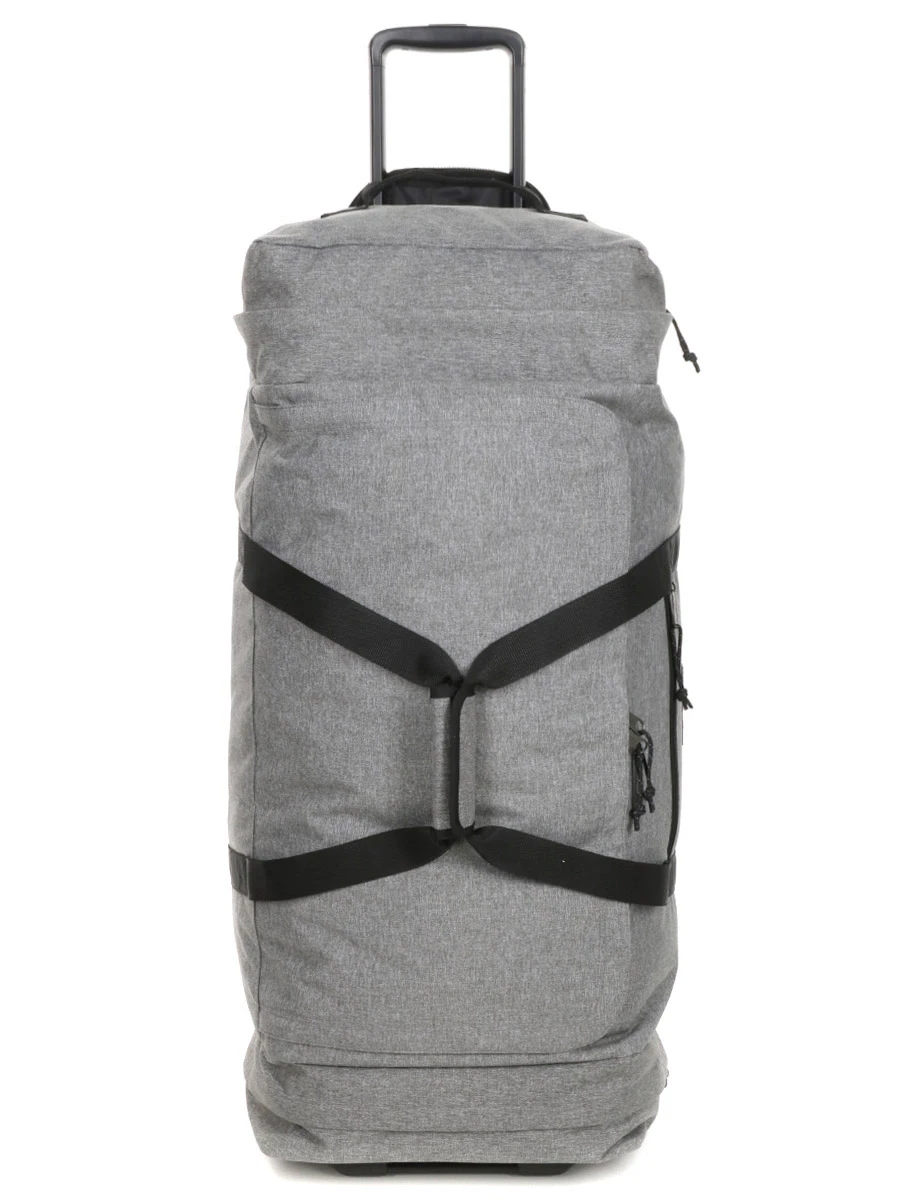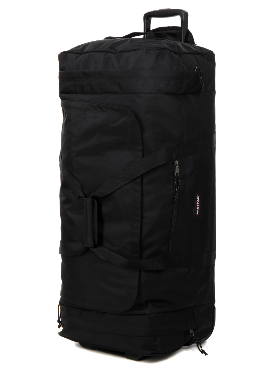 Concernant le transport, le sac de voyage à roulettes Eastpak Leatherface L+ est doté d’une poignée télescopique double tube et ajustable ainsi que de deux roulettes silencieuses permettant maniabilité et fluidité sur la route. Il peut bien entendu être déplacé à la main, grâce à la double poignée de portage, renforcée pour plus de confort. Il est ainsi plus simple de lui trouver une place dans le train ou de le soulever dans les escaliers. Enfin, les renforts situés sous le sac lui offre une protection supplémentaires contre les petits accrocs et notamment lorsqu’il est posé au sol.
