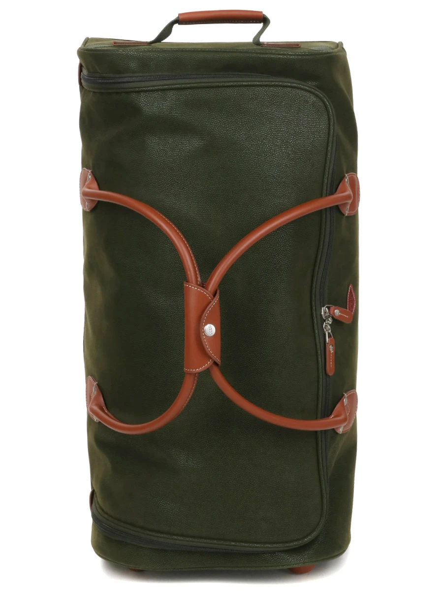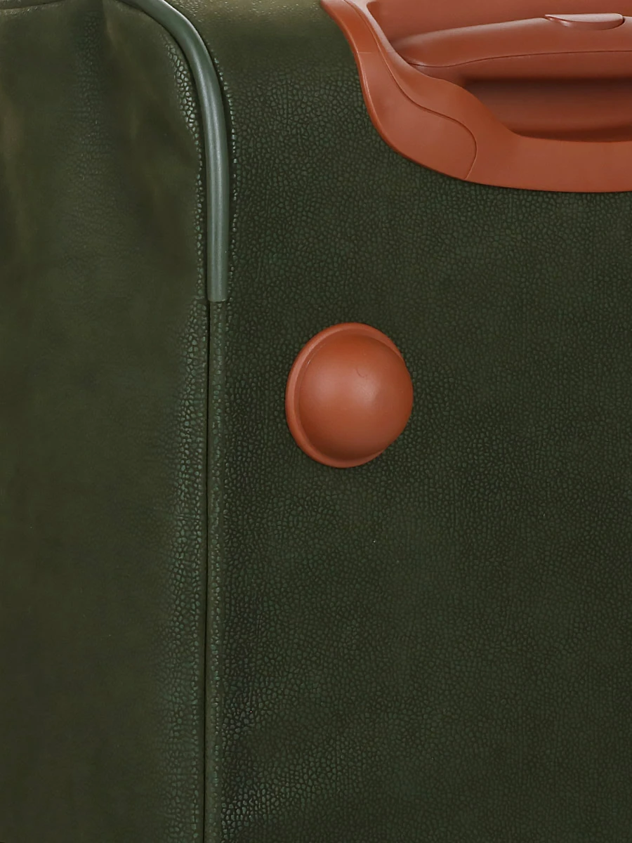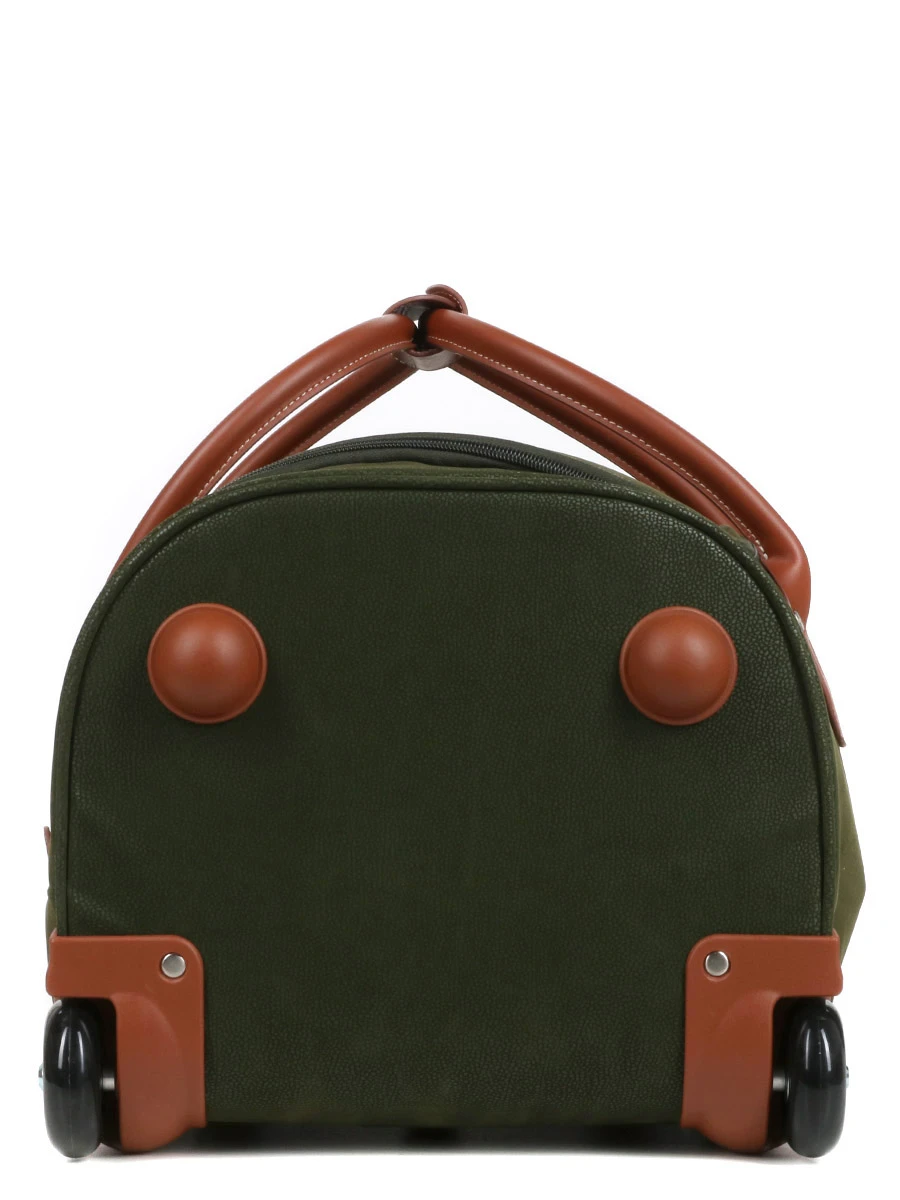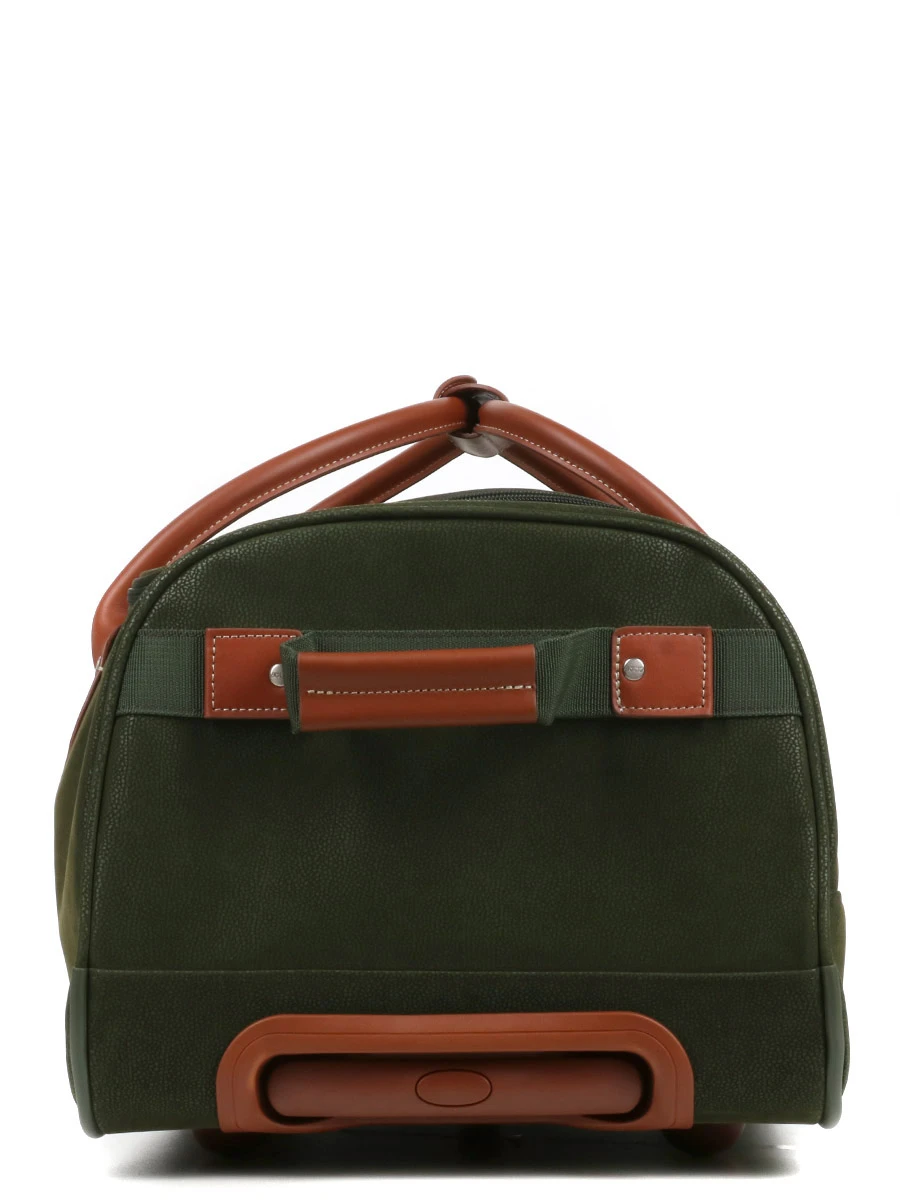 Le sac de voyage Jump Uppsala se tracte avec aisance en le saisissant par sa poignée télescopique à double canne et en le faisant glisser sur ses 2 solides roulettes. Dans ce cas, pour éviter une usure prématurée de son revêtement liée aux frottements du transport, il est bon de noter la présence de renforts rigides de protection. Si l’on préfère, il peut tout aussi bien être déplacer manuellement en se servant de ses 2 larges anses en cuir avec patte de maintien à boutons pression ou de sa poignée latérale rembourrée. Côté sécurité, là encore rien est oublié puisqu’il est fourni avec un élégant porte-adresse en cuir et un petit cadenas TSA à code permettant une sécurisation optimale de son espace de rangement.