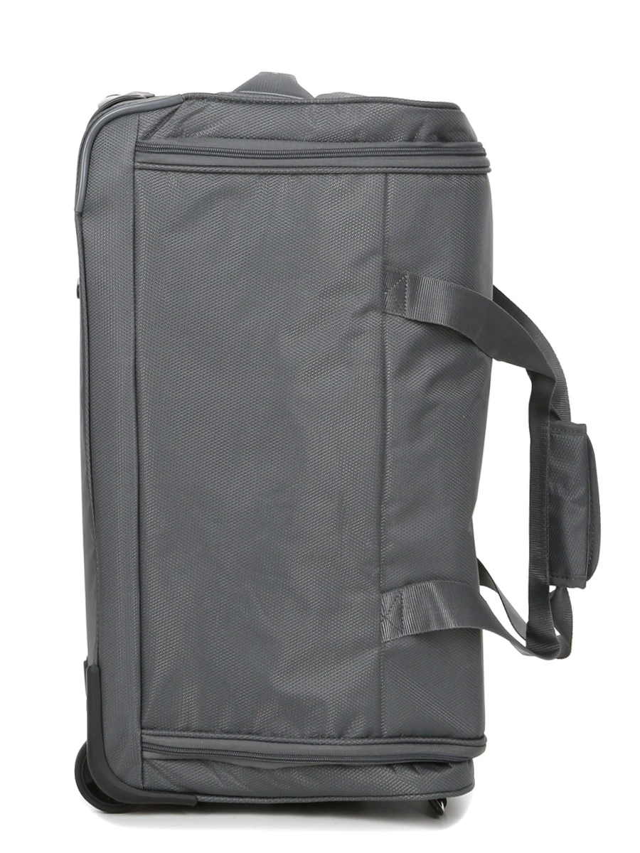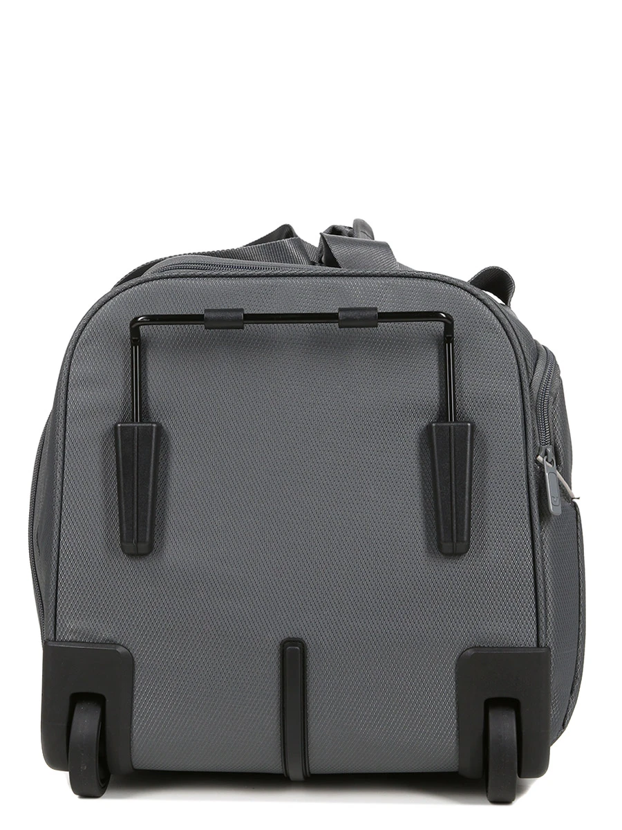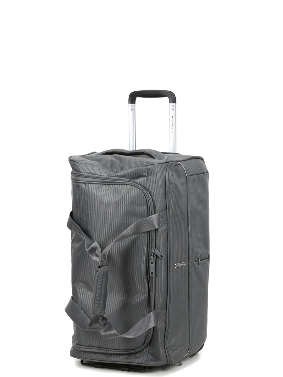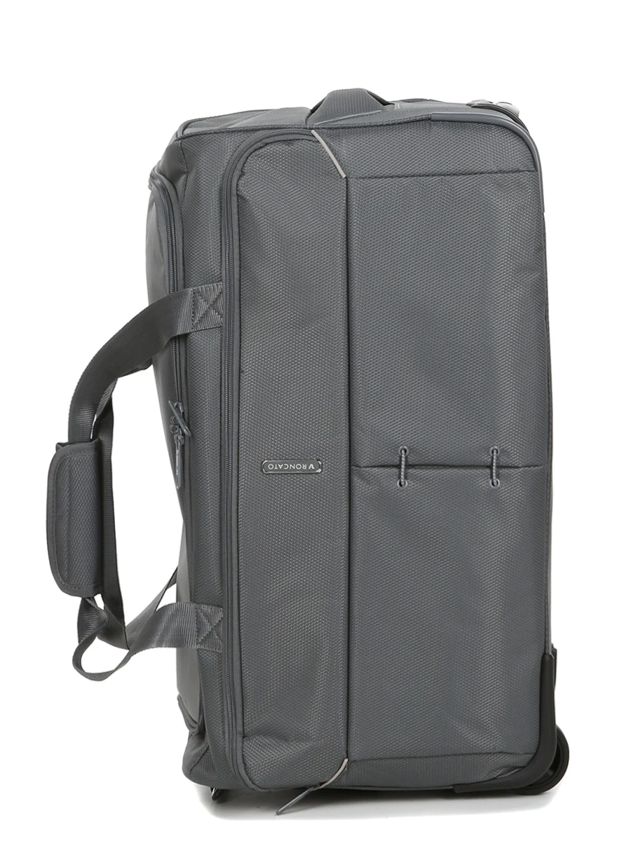 Le sac de voyage Roncato Ironik 2.0 se tracte avec fluidité grâce à sa poignée télescopique double canne à position réglable et à ses 2 solides roulettes. Si l’on préfère, il peut être tenu à la main par ses 2 larges anses dotées d’une patte de maintien ou en saisissant sa poignée haute moussée. Différents renforts rigides permettent de limiter les abrasions sur son revêtement pour une durabilité accrue. Si nécessaire, un petit cadenas (non fourni) peut être glissé dans les curseurs percés de sa fermeture éclair.