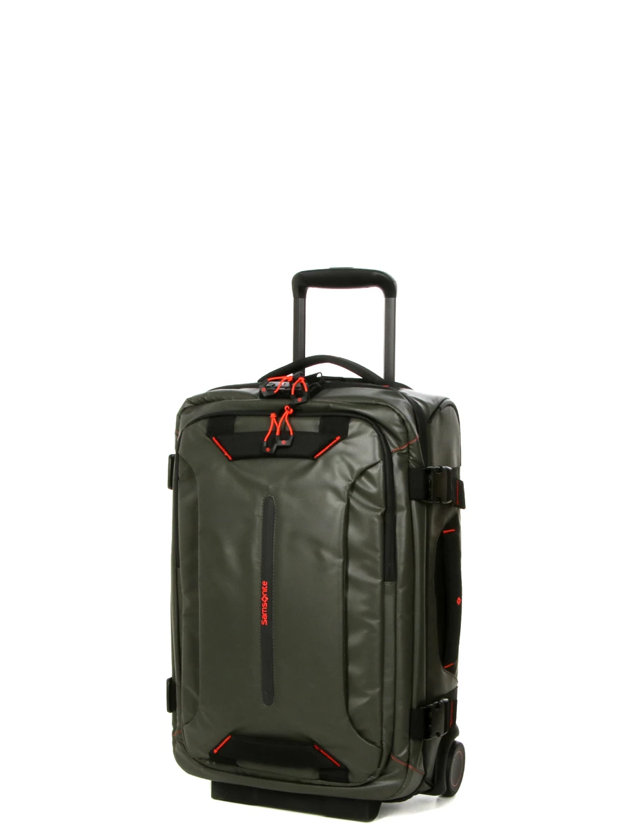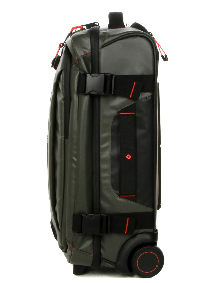 Le contenu du sac de voyage Samsonite Ecodiver est à l’abri des intrusions grâce à ses sangles de compression, sa serrure TSA à code et ses fermetures à glissière perforées pour pouvoir y accrocher un petit cadenas (non fourni). Les deux roues et le trolley double tube ajustable offrent un grand confort de tractage. Il est fourni avec quatre étiquettes autocollantes à remplir et placer sur le porte adresse rétractable. Il est facile à manier dans la cabine de l’avion grâce à ses cinq poignées moussées et ses patins de protection ergonomiques.