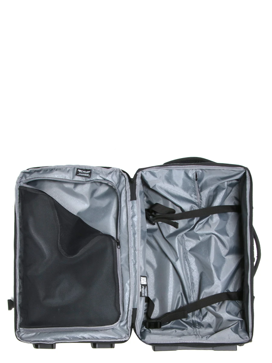 Le sac de voyage trolley Samsonite Roader permet une organisation méthodique des tenues de rechange pour quelques jours grâce à ses deux compartiments séparés par une cloison en mesh. Le compartiment inférieur est équipé de 4 sangles ajustables pour maintenir les vêtements à leur place pendant le voyage. A l’extérieur, une grande poche frontale peut accueillir des dossiers au format A4. Elle dispose en outre en son sein d’une poche rembourrée pensée pour un ordinateur jusqu’à 17 pouces. Enfin, la seconde poche frontale est idéale pour un livre ou autre élément en accès rapide.