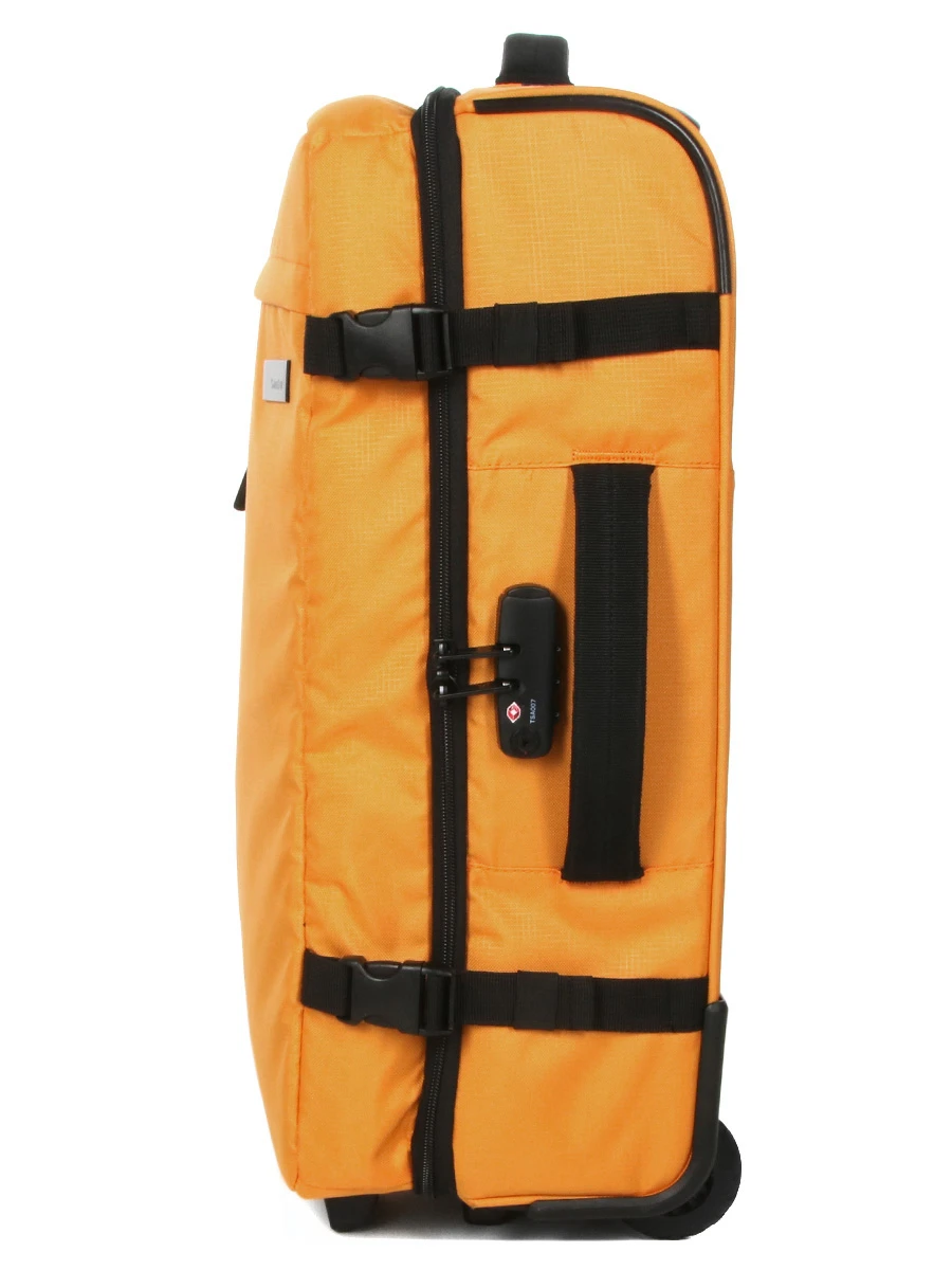 Les deux roulettes et le trolley double tube ajustable du sac de voyage Samsonite Roader lui confèrent une grande aisance de roulage. Les sangles de compression latérales permettent de modeler sa forme et de maintenir le contenu selon les besoins. Sur le côté, une serrure TSA à code permet de sécuriser le contenu en toute simplicité. Pour éviter de salir son revêtement, il est doté de patins de protection. Deux poignées rembourrées permettent de franchir d’éventuels obstacles sans s’abîmer les mains. A l’arrière, un porte adresse rétractable permet d’y coller l’une des quatre étiquettes à remplir fournies.