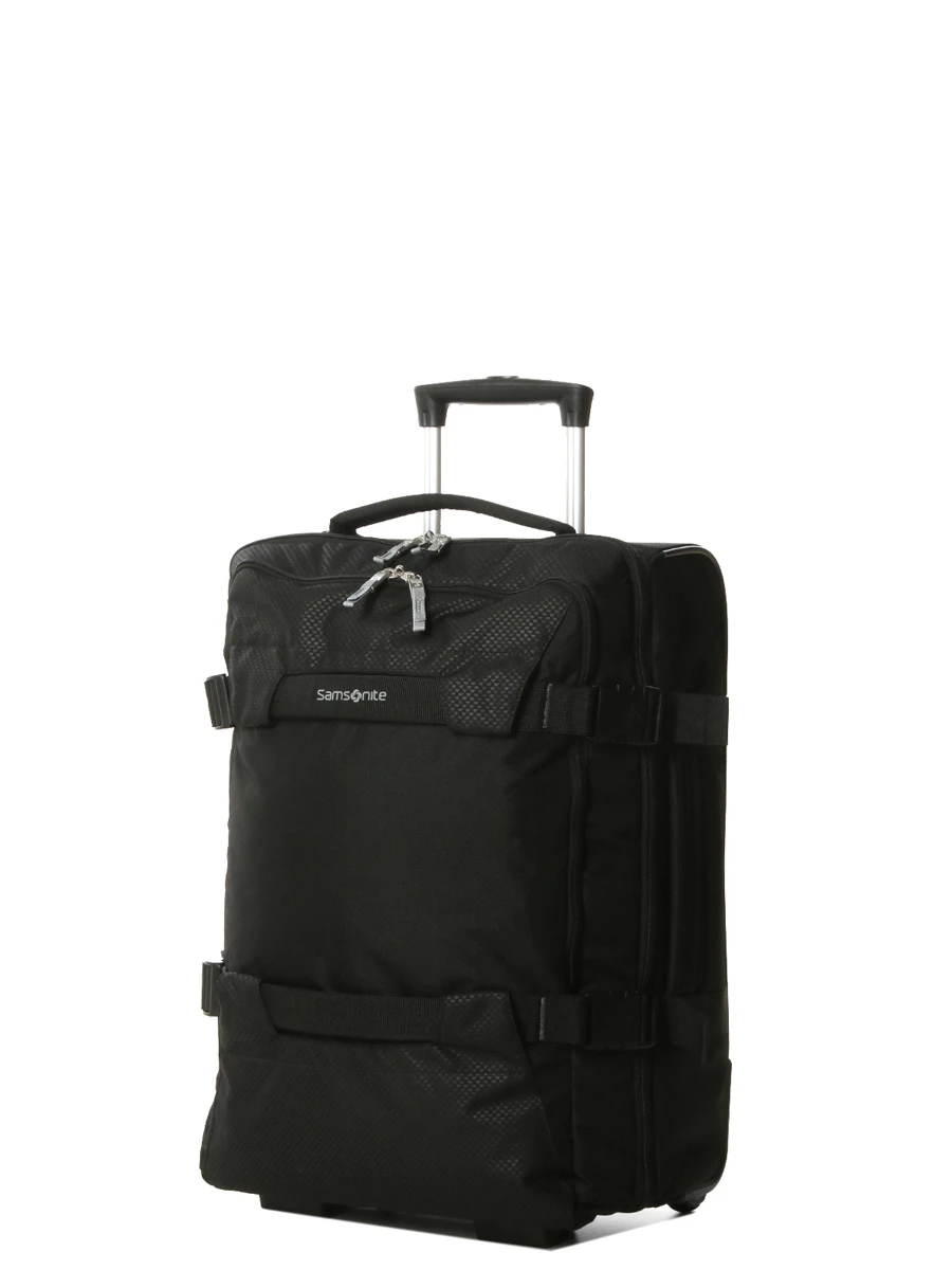Ce sac week-end Samsonite Sonora se tracte à l’aide d’un trolley double tube ajustable très pratique monté sur deux roues. Il est en prime pourvu de deux larges anses de portage pour le manipuler avec aisance dans les escaliers ou le placer dans le coffre d’une voiture, par exemple. Il est particulièrement robuste grâce à ses renforts de protections qui lui apportent également une certaine stabilité lorsqu’il est placé debout. Pour optimiser au mieux son volume, il est en prime muni de sangles de compressions.