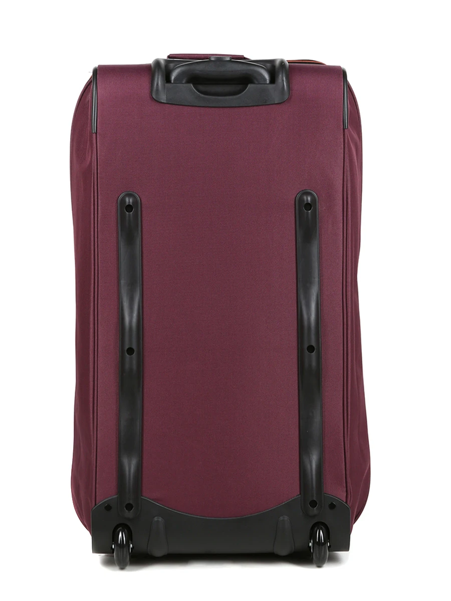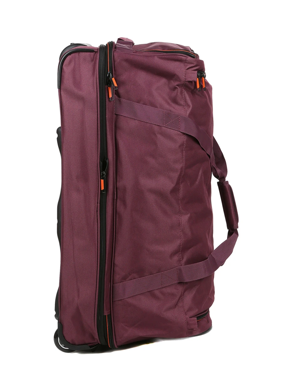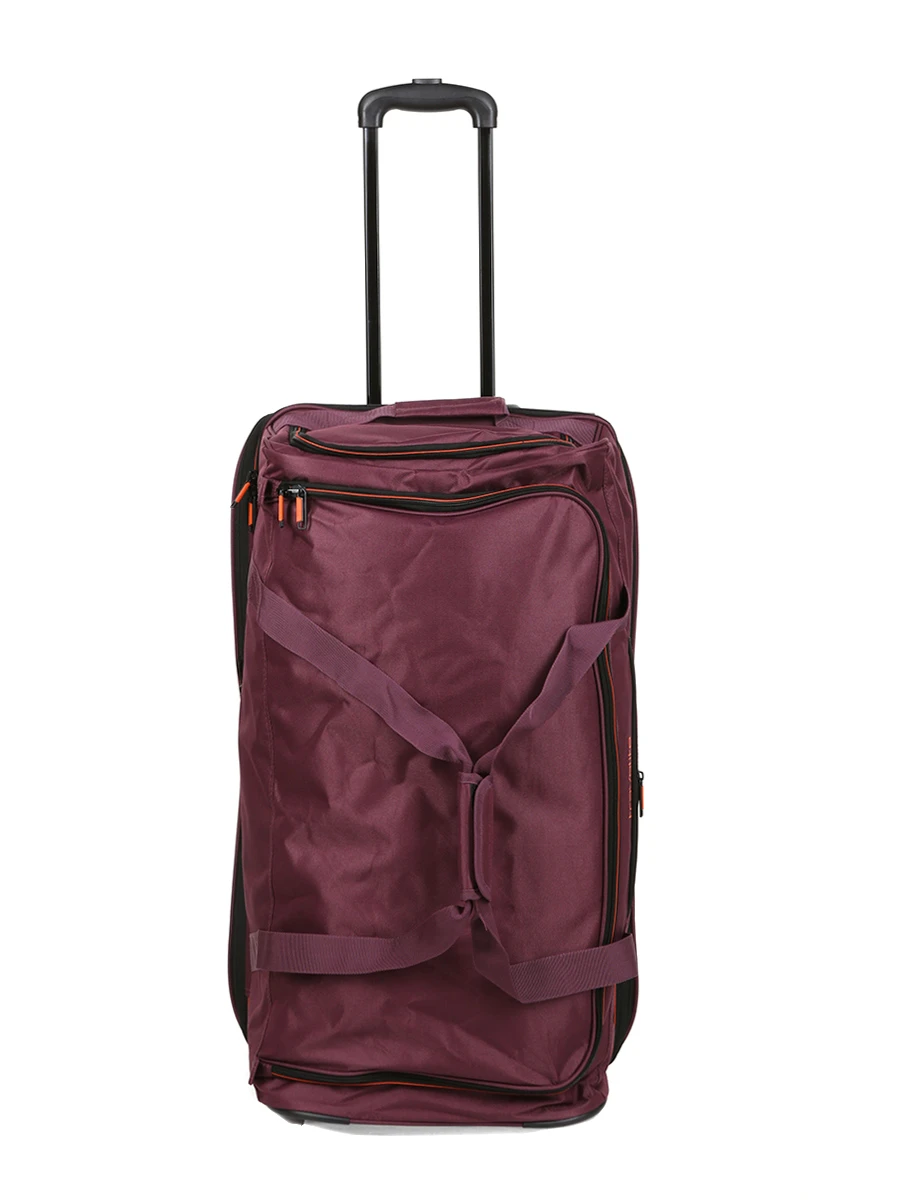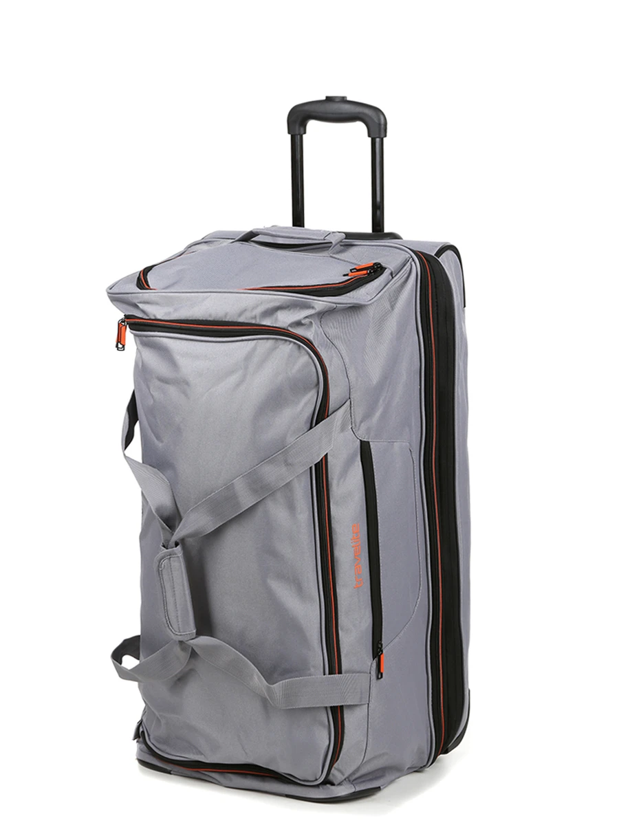 Le sac de voyage Travelite Basics se transporte sans effort en le faisant glisser sur ses 2 solides roulettes et en le dirigeant à l’aide de sa poignée télescopique double canne à position ajustable. Pour faciliter son portage à la main ou à l’épaule, il est aussi muni de 2 grandes anses pourvues d’une patte de maintien à attache velcro. Des renforts rigides sont disposés au niveau de son fond pour protéger son revêtement des abrasions et des salissures. Pour plus de tranquillité pendant le trajet, il est possible d’utiliser un cadenas (non fourni) dans les curseurs troués de ses fermetures éclair.