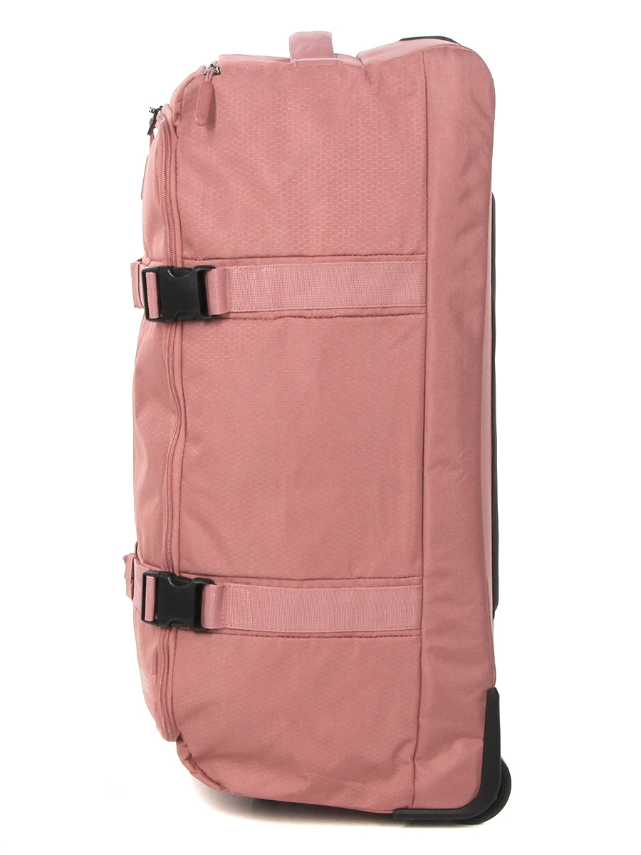 Le sac Travelite Kick Off L se tracte avec aisance à l’aide de sa poignée télescopique double canne et de ses 2 solides roulettes. Pour préserver son revêtement des abrasions, des renforts rigides sont présents au niveau de son fond. Pour le porter à la main, on peut opter pour l’une ou l’autre de ses 2 poignées rembourrées. Ses 4 sangles de compression permettent quant à elles de maintenir efficacement en place l’ensemble de son contenu. Pour voyager l’esprit serein, il est possible de glisser un petit cadenas (non fourni) dans les curseurs percés de sa fermeture éclair.
