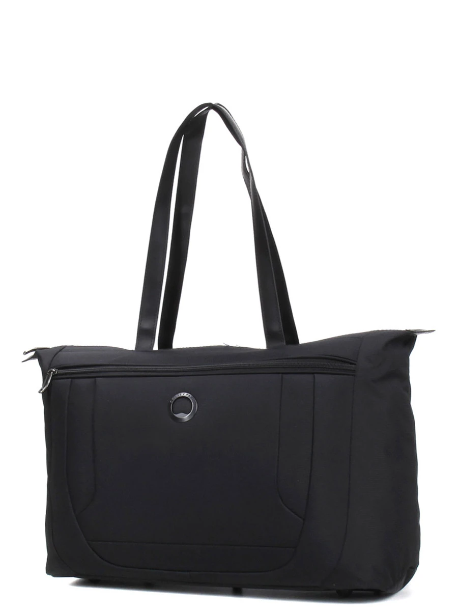 Le sac week-end Delsey Helium DLX peut se porter à l’épaule par ses longues poignées en similicuir, ou s’accrocher au trolley d’une valise à roulettes grâce à son passant arrière. Le fond renforcé permet d’absorber les chocs pour protéger le contenu. Des patins anti-éraflures protègent son revêtement lorsqu’il est posé.