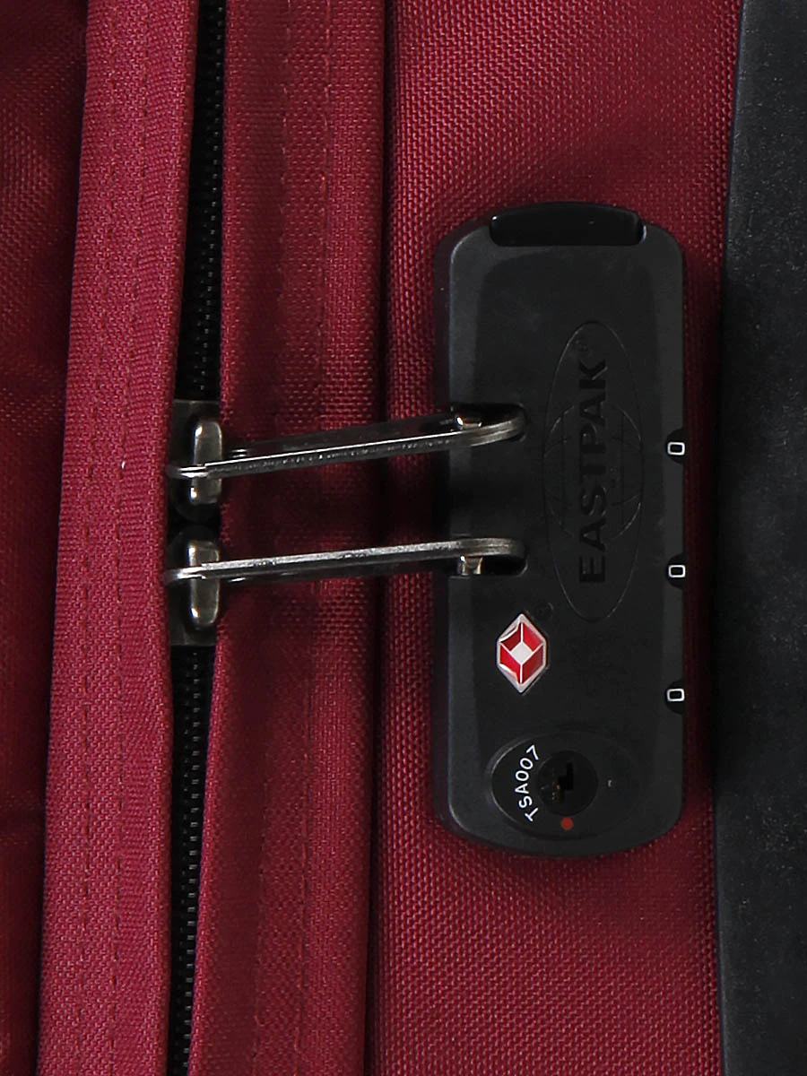 Le sac cabine Eastpak Tranverz S se déplace agréablement avec ses 2 roues et sa poignée télescopique double tube ajustable. 2 poignées de portage permettent de le déplacer aisément dans les escaliers ou de le manipuler à la main.