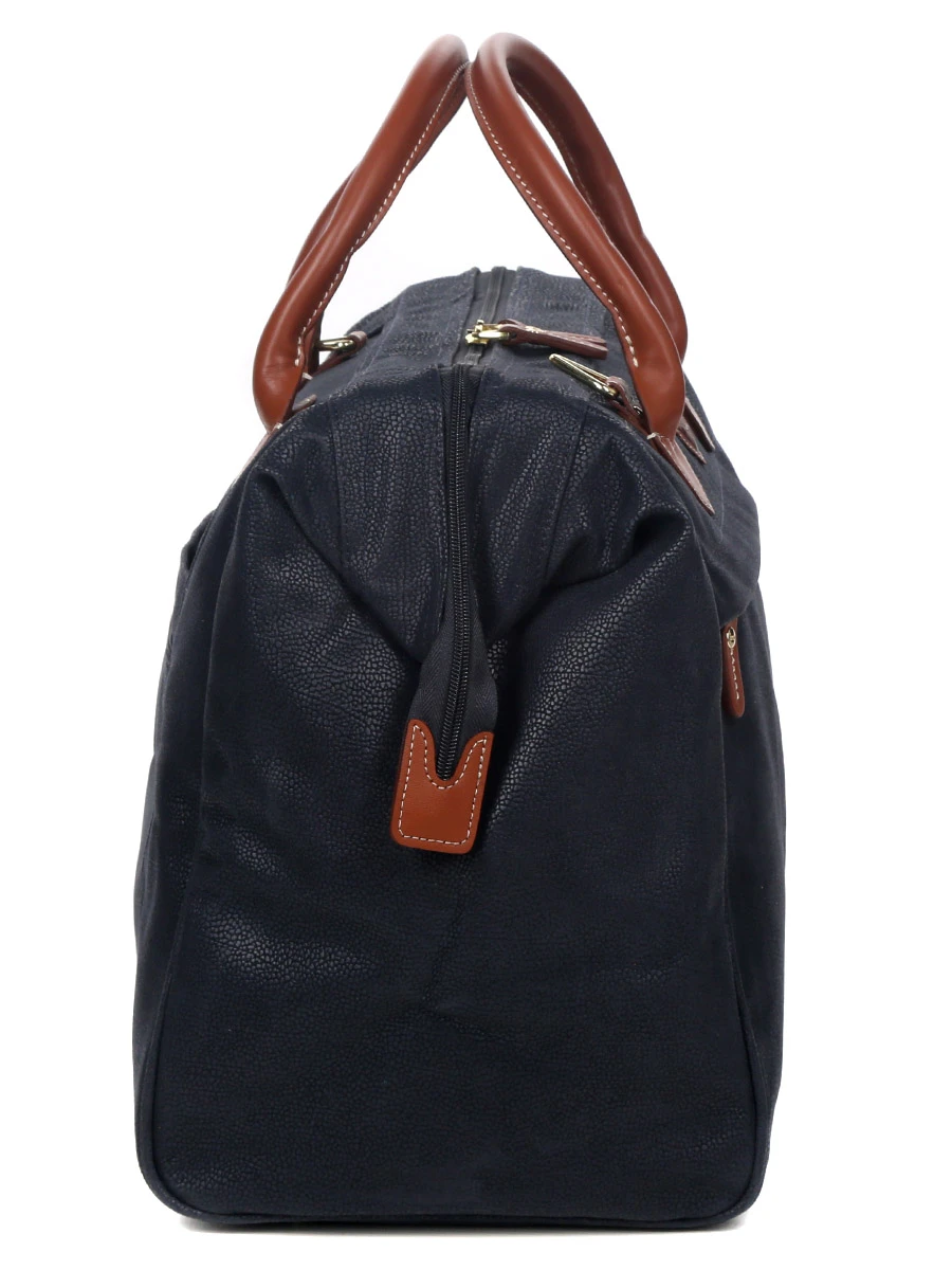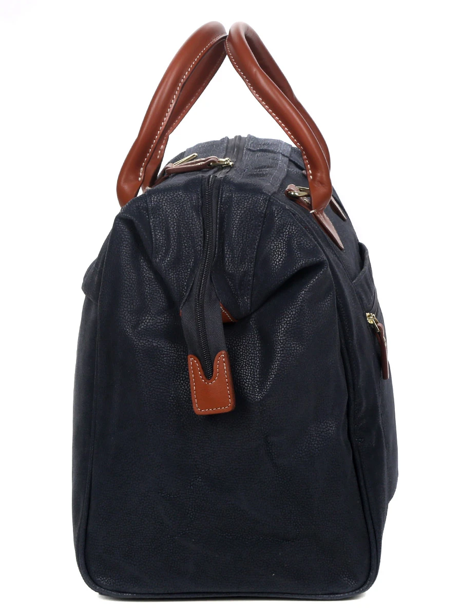 Le sac de voyage Jump Squarmouth Uppsala 42 cm permet aux nomades élégants de transporter avec chic toutes les affaires nécessaires pour un long week-end. Sa toile enduite à finition façon cuir grainé et ses détails en cuir de vachette pleine fleur ainsi que son ouverture façon sac diligence participent à son allure raffinée, classique et intemporelle. Sa conception soignée et robuste est plus garantie 5 ans par la marque. Son style et sa solidité ne sont pas ses seuls atouts puisqu’il dispose également d’un espace de rangement bien pensé et de différentes options de portage confortables. Son gabarit répond aux normes drastiques de nombreuses compagnies aériennes ce qui permet de le garder toujours avec soi y compris en cabine.