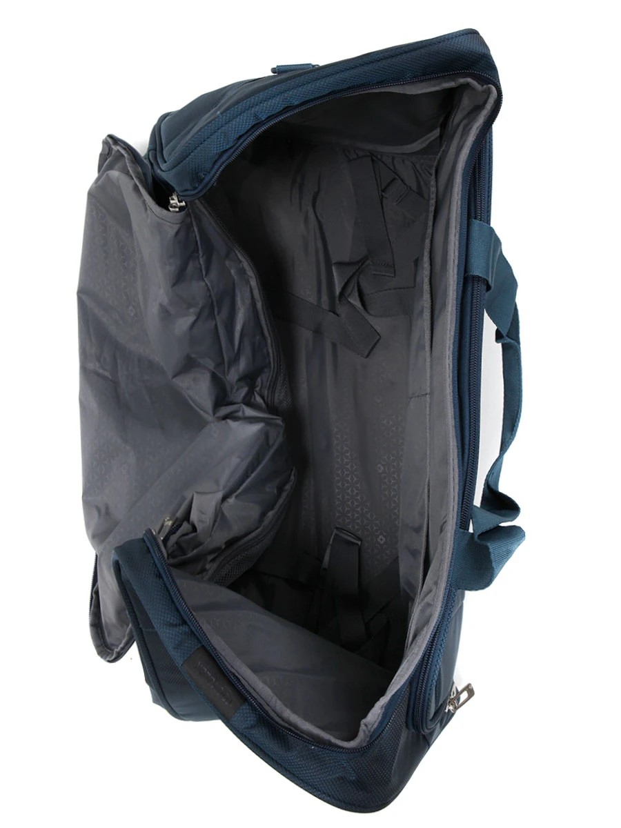 Le sac 48 h Samsonite Respark dispose d’un compartiment d’une capacité de 54 L pouvant accueillir quelques vêtements, paires de chaussures, accessoires de mode ou divers autres effets personnels. Son ouverture zippée en U permet un chargement rapide. Sa grande poche zippée en mesh et ses 2 poches ouvertes permettent de sérier à part des cordons d’alimentation, un livre de chevet, etc. Ses 4 sangles ajustables assurent quant à elles un maintien efficace de l’ensemble de son contenu. Pour préserver l’ensemble de vos affaires des éventuels chocs, il est appréciable de noter que son fond est moussé et pourvu de patins de protection rigides.