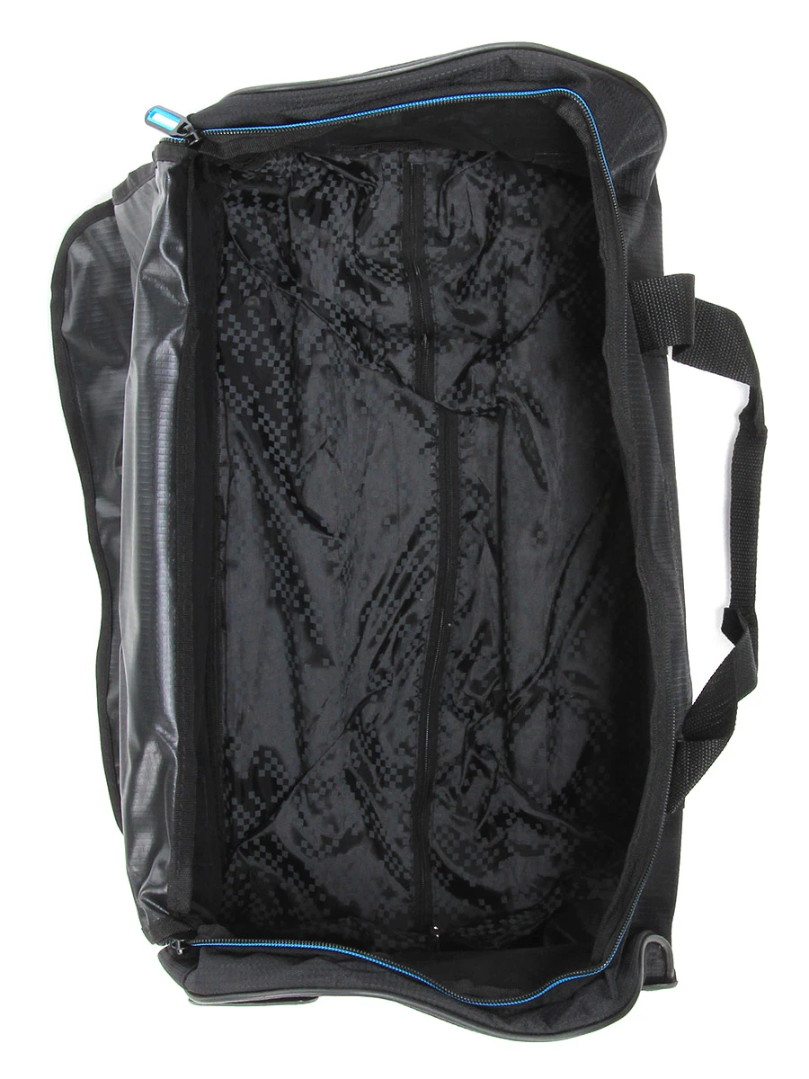 Le zip du sac de voyage 2 roues Davidts Rapid Air Light prĂ©sente une ouverture plombier très pratique puisqu’elle offre un accès complet Ă son contenu. Le compartiment isole les affaires de l’humiditĂ© ambiante par une doublure intĂ©rieure sur certaine parois et une toile enduite sur les autres. Le nĂ©cessaire pour des courts sĂ©jours loge dans cet espace de rangement : quelques vĂŞtements de rechange, une paire de chaussures, une trousse de toilette et des accessoires de loisirs.Â