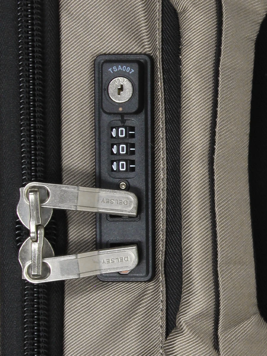 La valise Delsey Sky Max 2.0 se déplace du bout des doigts avec ses 4 doubles roulettes multidirectionnelles et sa poignée télescopique à position réglable. Dessus, une large poignée agréablement moussée facilite son portage à la main. Pour sécuriser l’accès à son contenu, on peut compter sur sa fermeture à Zip Securitech 3 fois plus résistante aux intrusions qu’un zip classique et sur sa serrure TSA à code. Enfin, pour un enregistrement simple et rapide de sa garantie sur le site de la marque, il suffit de flasher son QR code intégré.