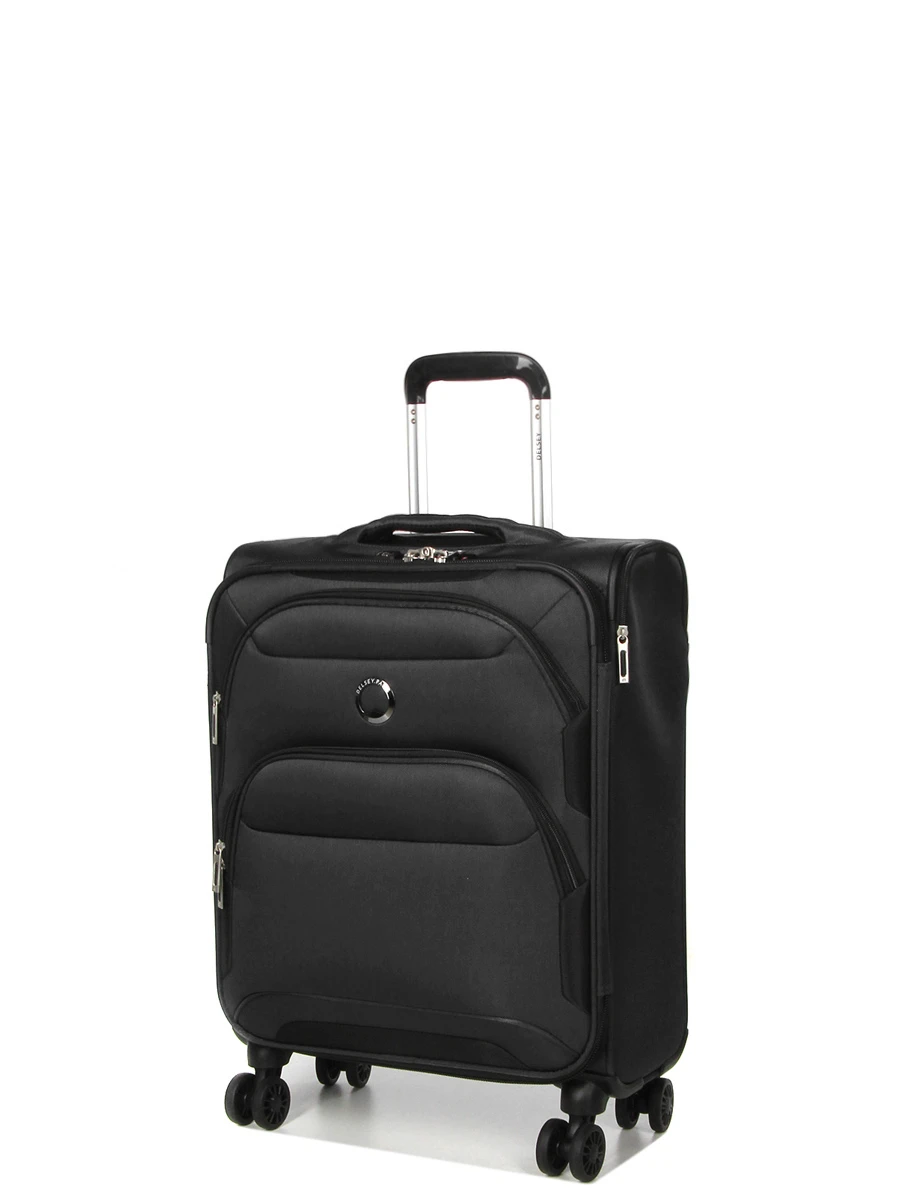 La valise Delsey Sky Max 2.0 Slim 55 cm marie avec brio une conception légère et robuste en polyester de qualité à un dispositif de roulage tout confort et un agencement astucieux. Son petit gabarit permet de s’encombrer le moins possible le temps d’un week-end. Il est en plus compatible avec les normes cabine les plus strictes comme celles des compagnies low cost. Pour des trajets placés sous le signe de la sérénité, elle est muni d’une fermeture à Zip Securitech innovante ainsi que d’une serrure TSA à code. En gage de sa fabrication soignée, cette valise bénéficie d’une garantie de 3 ans auprès de Delsey.