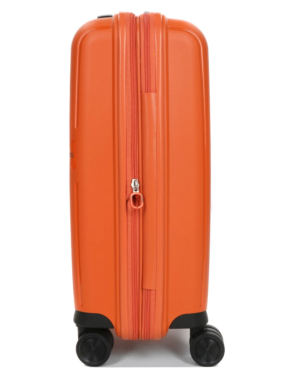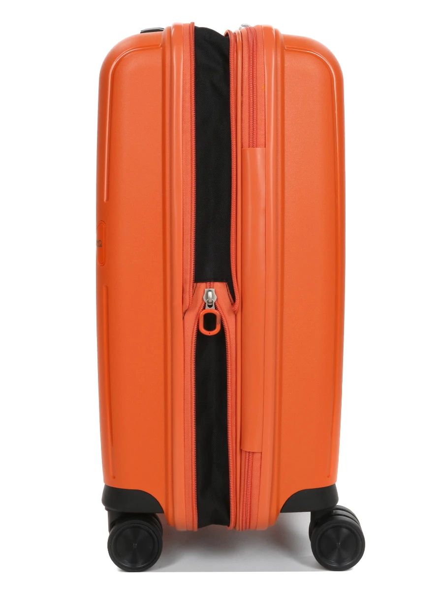 La valise Jump TXC 2 – 55 cm est d’une taille idĂ©ale pour les courts sĂ©jours et pour l’emporter en cabine lors des trajets aĂ©riens. Ses dimensions compactes ne dĂ©passent en effet pas les normes des compagnies Ryanair et EasyJet. Munie d’un soufflet, la valise gagne 7 litres de rangement supplĂ©mentaires lorsqu’il est dĂ©ployĂ©, atteignant ainsi 41 litres. Sa coque rigide en polypropylène affiche un design Ă la fois sobre et moderne. Aussi solide que lĂ©gère, elle rĂ©siste aux manutentions durant le voyage. Sa serrure TSA Ă code qui peut ĂŞtre ouverte par les agents des douanes Ă©vite bien des dĂ©boires lors des vols vers l’AmĂ©rique du Nord. EncastrĂ©e sur le haut de la coque, cette serrure prĂ©sente en outre une grande ergonomie de verrouillage. Notons que la marque offre une garantie de 5 ans.
